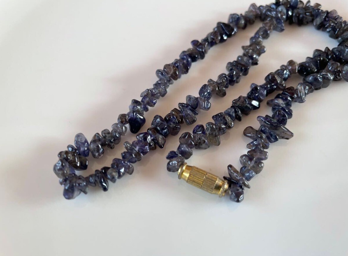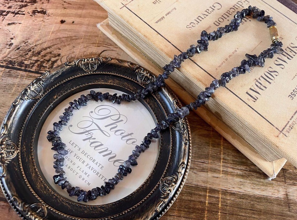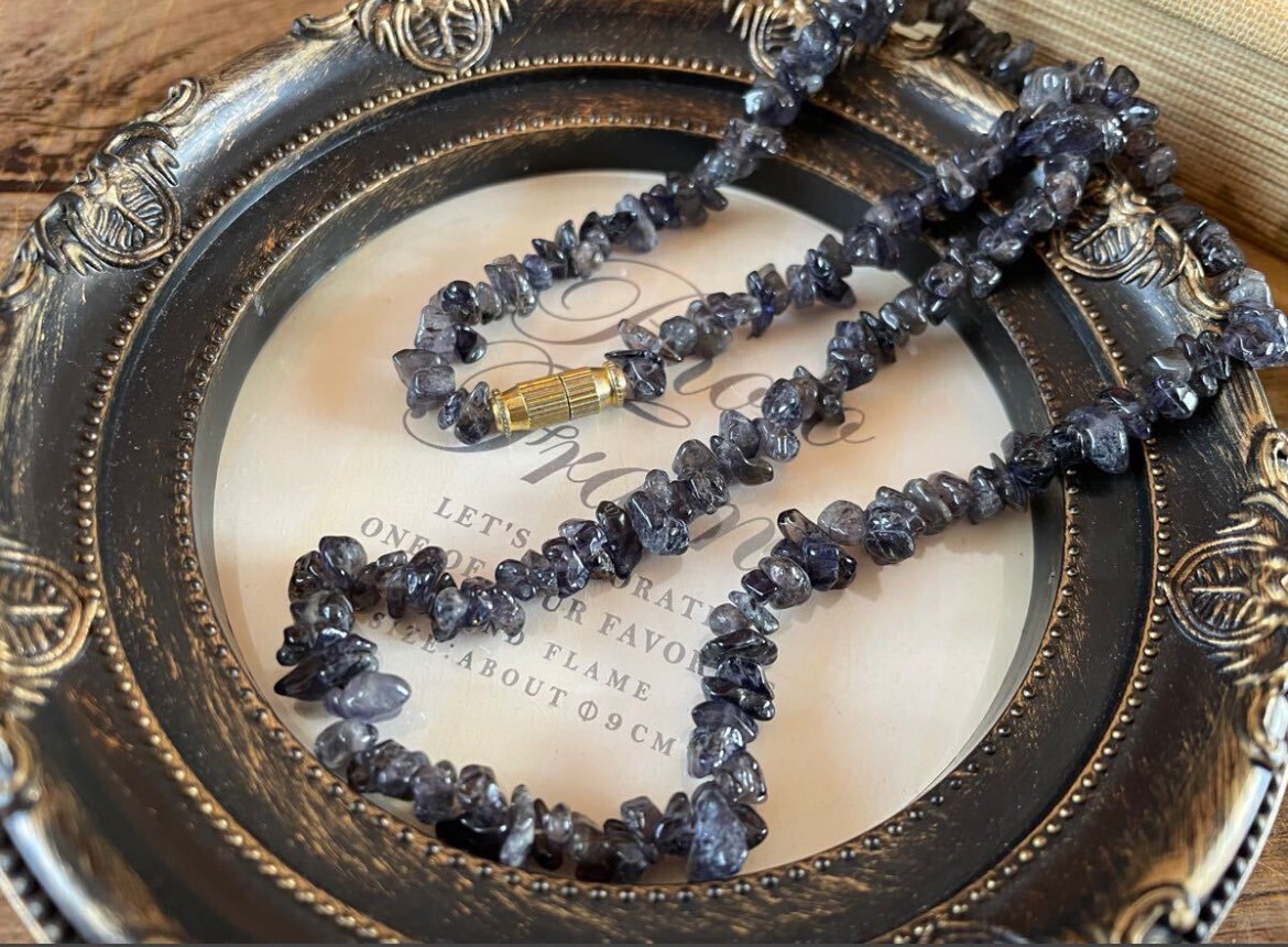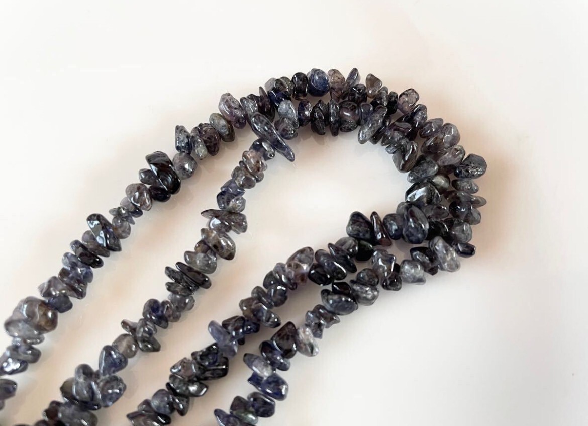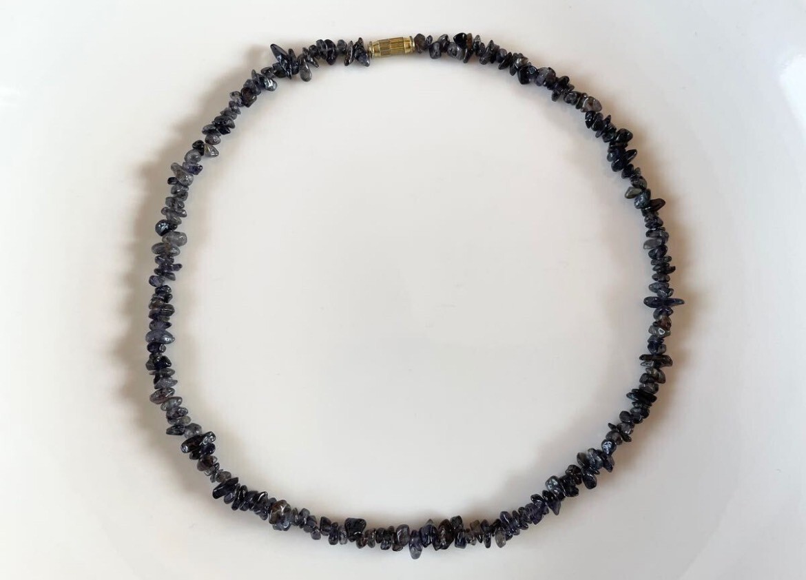 こちら暗めのアイオライト約5mm前後のさざれ石のネックレスになります。