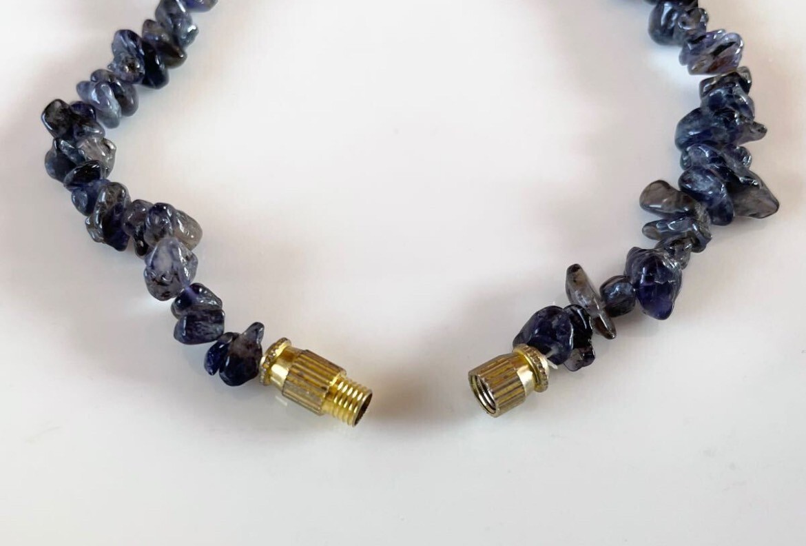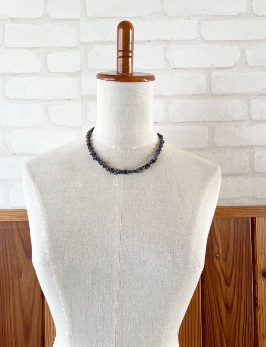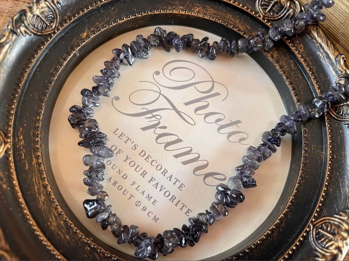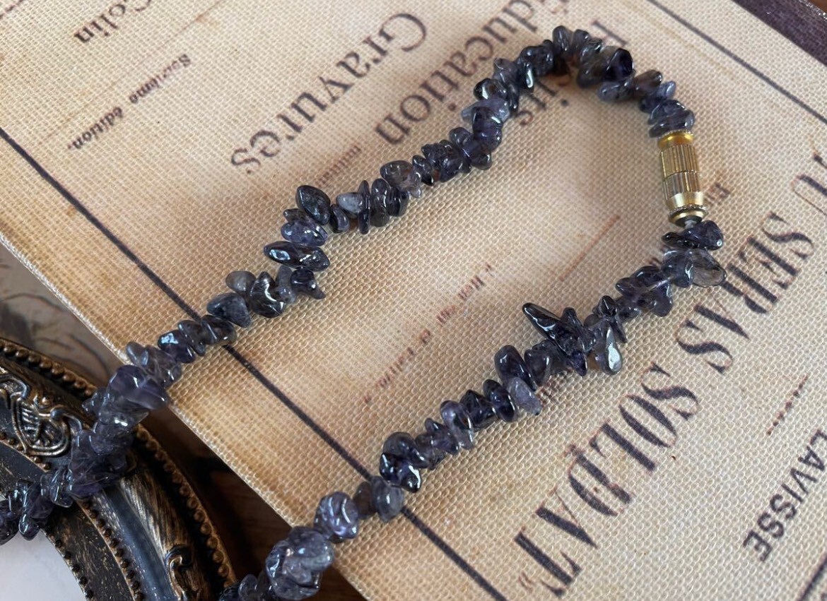 こちら暗めのアイオライト約5mm前後のさざれ石のネックレスになります。