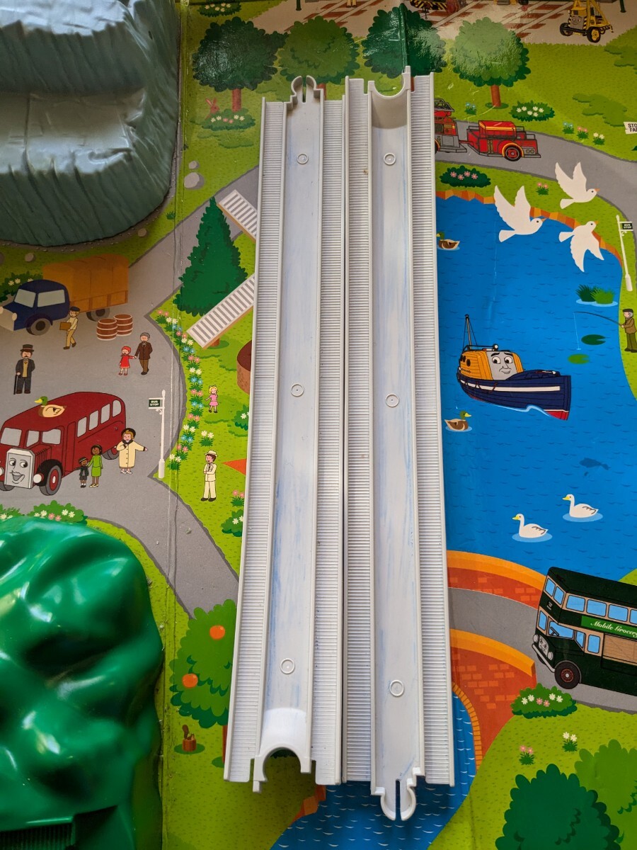 イタミございます。外箱はございません。 シールは子供が貼りました。レールにインク跡あり、長く、自宅保管ということをご理解の上入札下さいますようお願い致します。