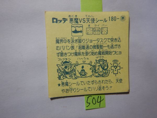 悪魔VS天使シール 180-悪 no.504 魔雷婆  ビックリマンチョコ ロッテ LOTTE