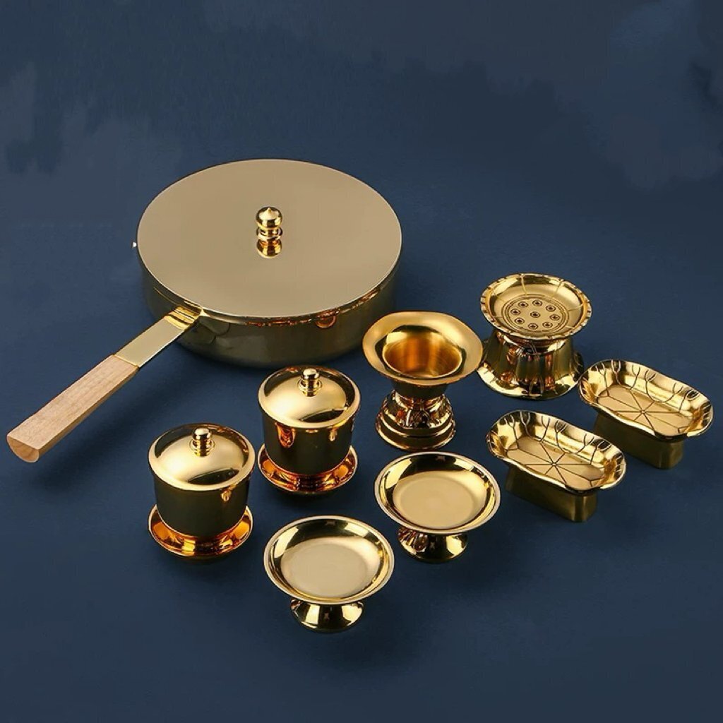密教法具 真言宗 聖天用法具 大根器/天座/団器/華水器 9点 仏具 真鍮製 磨き仕上げ