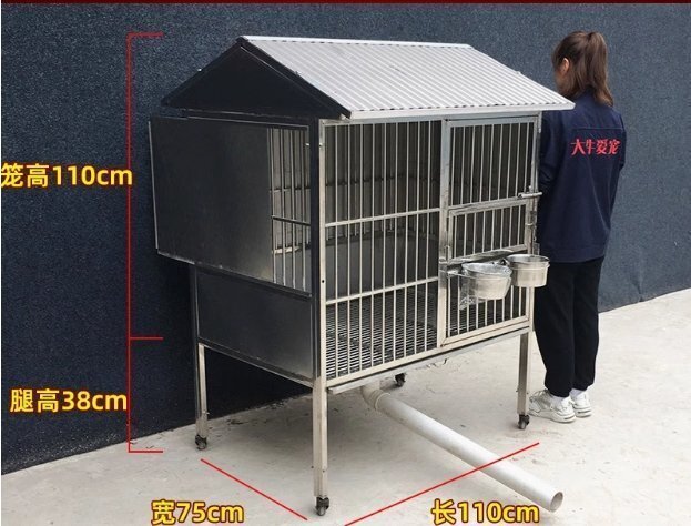 国内稀少!ステンレススチール製 犬用 ケージ 屋外防雨 断熱 トイレ トレイ ユニバーサルホイール 中型犬用 耐荷重500kg 110*75*158cm