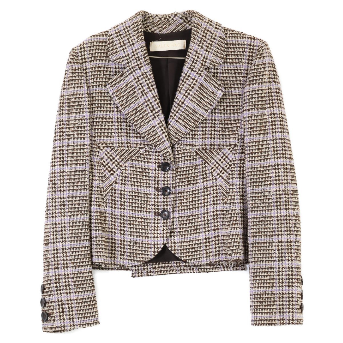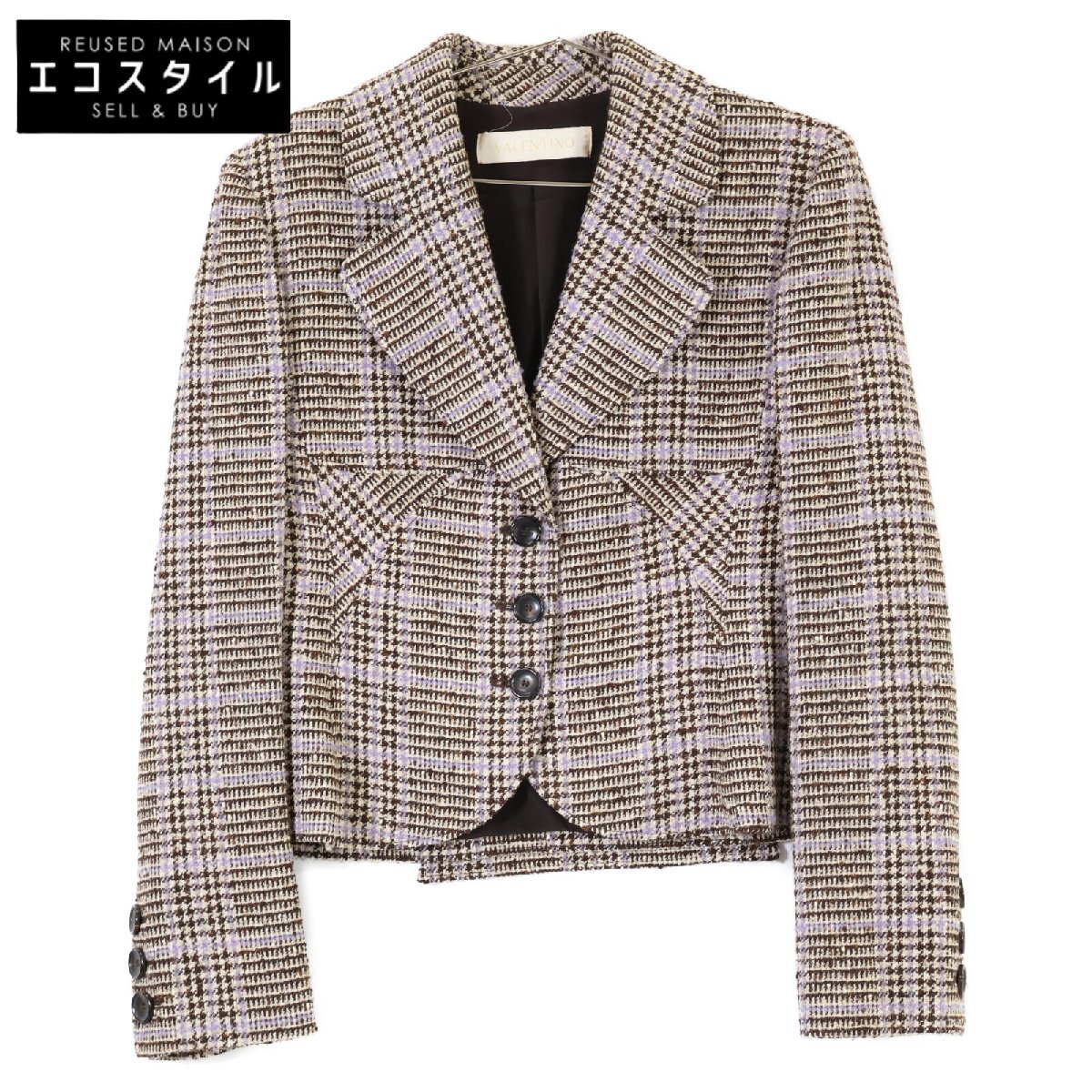 国内正規/ VALENTINO ヴァレンティノ チェック ツイード ショート ジャケット 12 ベージュ/パープル/ブラウン レディース