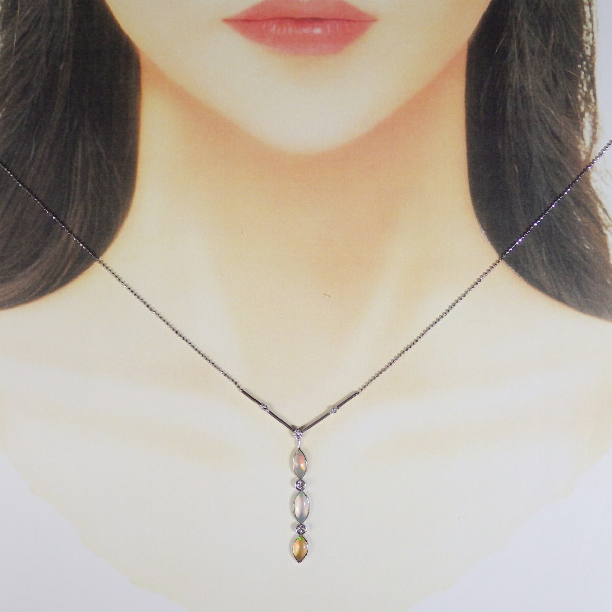「Pt オパール OPAL ダイヤモンド プラチナ Y字 ネックレス」