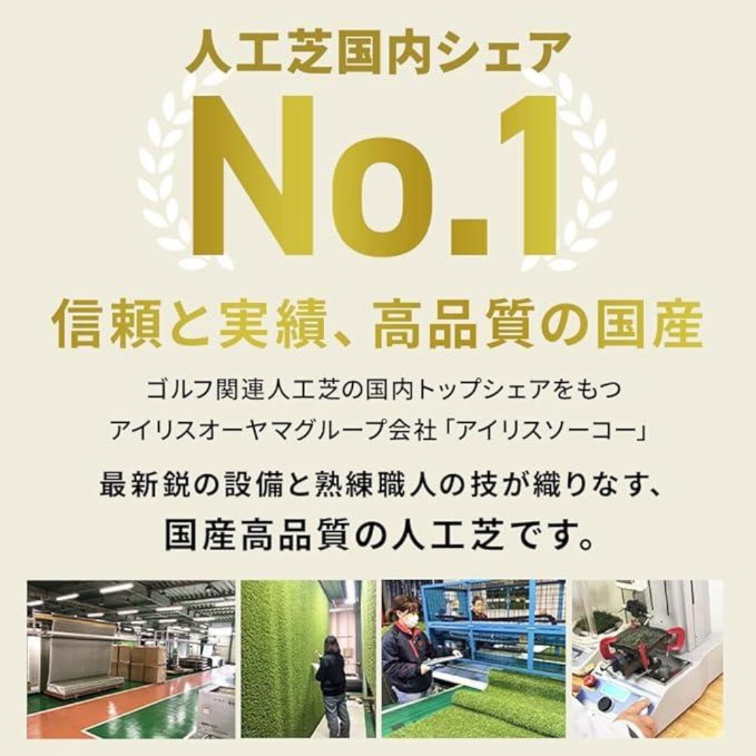 まるで天然芝の紫外線対策や防カビ加工が施されており、美しい緑を控えめに維持可能です。