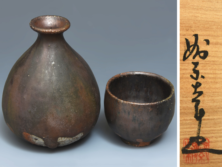 土平窯 藤ノ木土平 (造) 黒唐津 酒器 共箱 共布 徳利 ぐい呑み 酒器 酒盃 酒杯 猪口 陶磁器 唐津焼 |