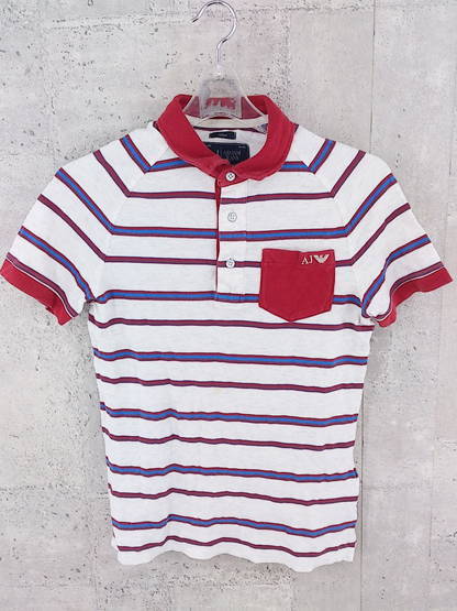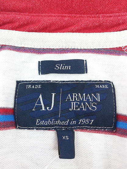 ◇ ARMANI JEANS アルマーニジーンズ ボーダー 鹿の子 半袖 ポロシャツ XS グレー レッド *