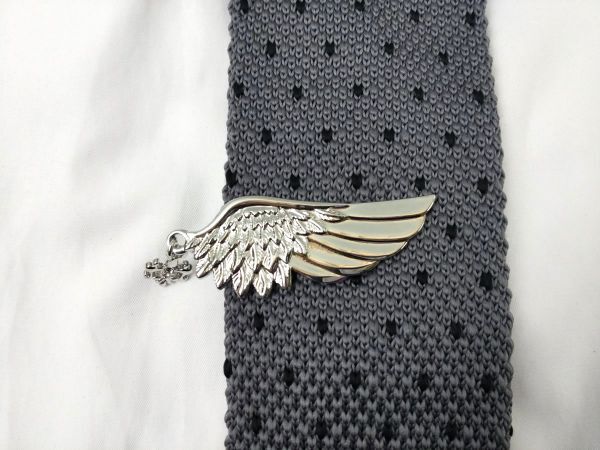 ネクタイピン チャーム付きが付いて遊び心満載です。 普段使いや結婚式・パーティーにもオススメです。 カラー:写真の通り 素材:真鍮、ロジウムコーティング サイズ:約5.5cm X 2cm 自宅保管の未使用品です。 パッケージはありません。 |