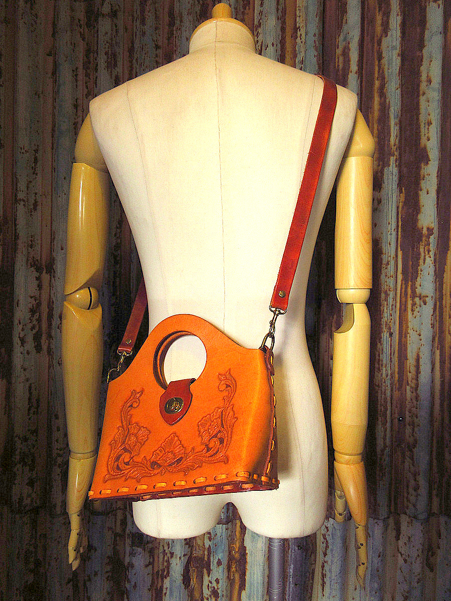 1960’s-1970’s 型押しレザーショルダーバッグ茶