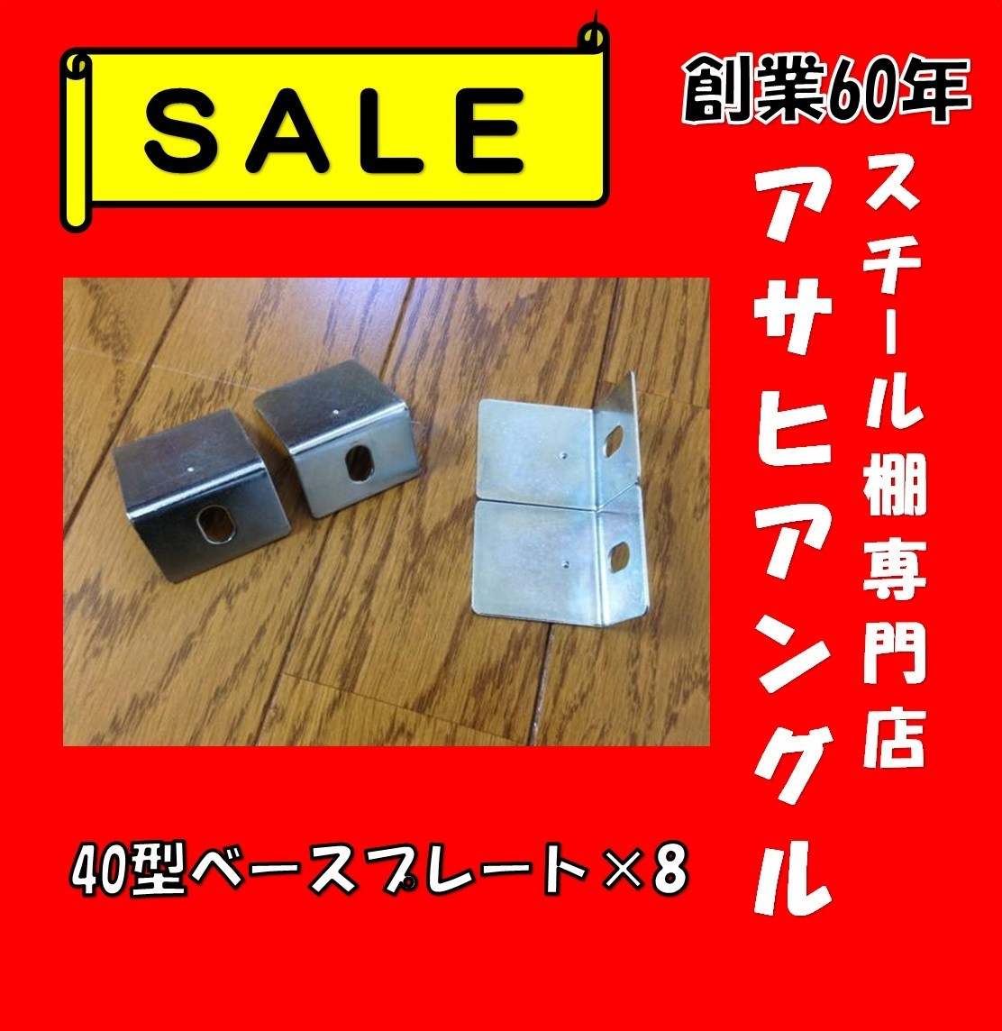 ●スチールラックパーツ 部品 40型ベースプレート 4枚セット ●個数指定可能 バラ売り 単価70円 ●送料:レターパックライト (20ヶまで) 20ヶ以上の場合宅急便にて発送 その他出品中の商品と同梱可能です。 早急に必要な場合も事前にお問い合わせくださいませ。ご希望に添えない場合もございますが、全力で対応させていただきます。 組立説明書のダウンロードや本商品の詳細、まとめ買いや現場施工等 詳しくは当社ホームページに記載しておりますのでどうぞご覧くださいませ。 http://www.asahiangle.net/ | ||||
