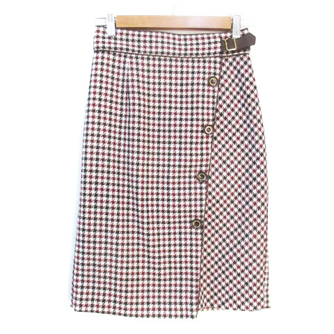 アプワイザーリッシェ タイトスカート ミモレ丈 千鳥格子柄 ギンガムチェック柄 マルチカラー 2 M 白 赤 ホワイト レッド レディース