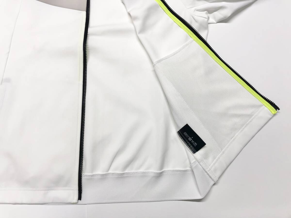 高ストレッチの機能糸を使用し、 ハイゲージの編み機で特殊な組織に編み上げた素材で、軽さ、ハリコシ、 ストレッチを実現させたマルチパーパスブルゾン。とにかく軽く、シワになりにくいこのアイテムはファッション性を兼ね備えつつも 激しい動きにも耐えられる新感覚な仕上がりとなっております。後ろ袖はリブ仕様になり、スイングの際の可動域を最大限にしより良いパフォーマスを引き出します。