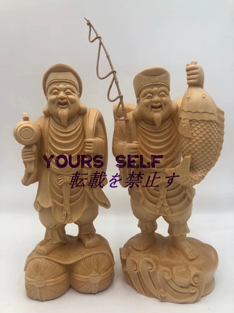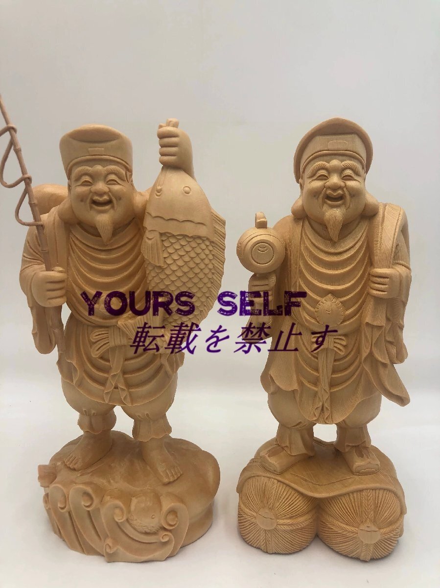 密教法具 寺院用仏具★ 仏像 惠比寿大黑的套装 木雕佛像吉祥物 件 利益 惠比寿天 大黑天 佛像 件 七福神 惠比 神架