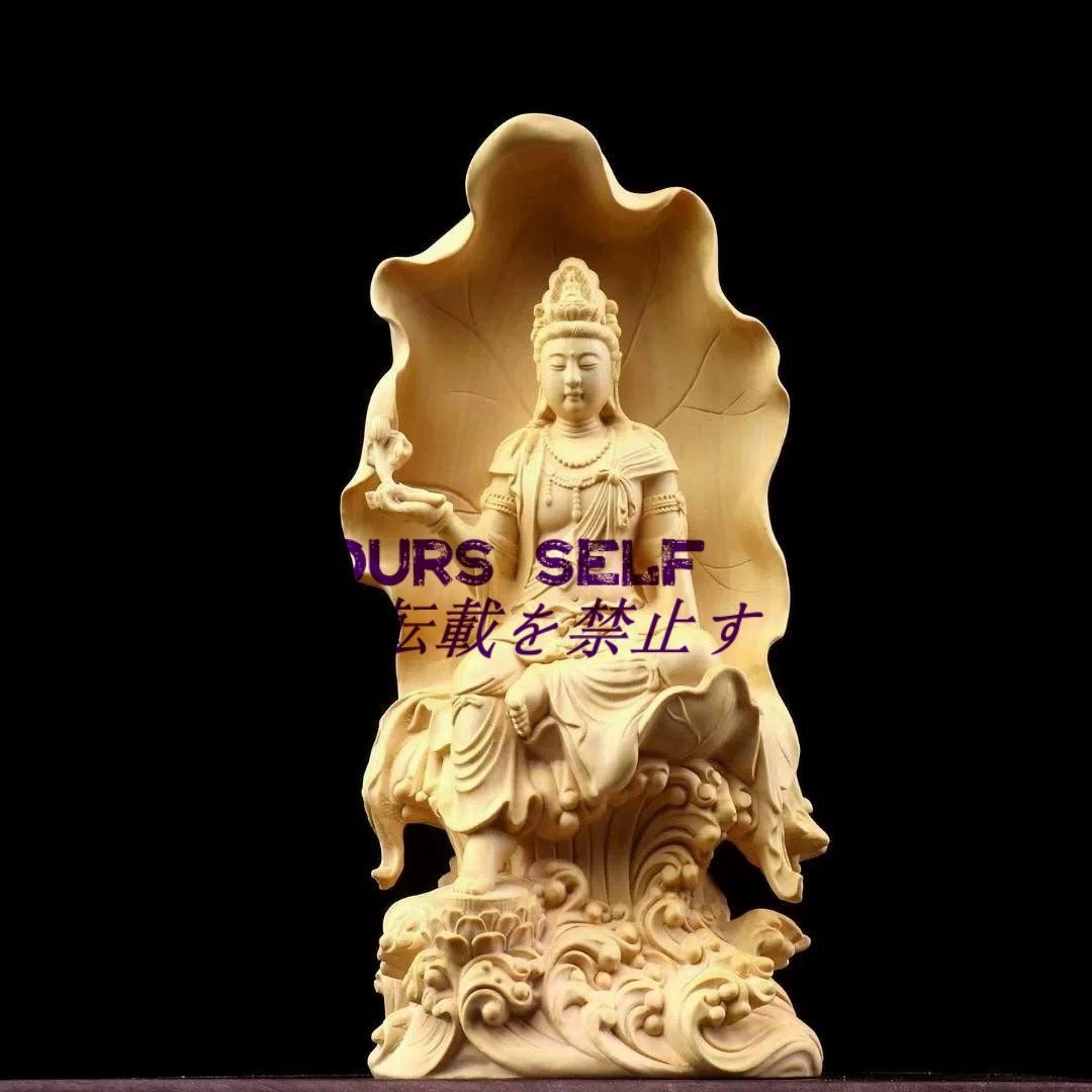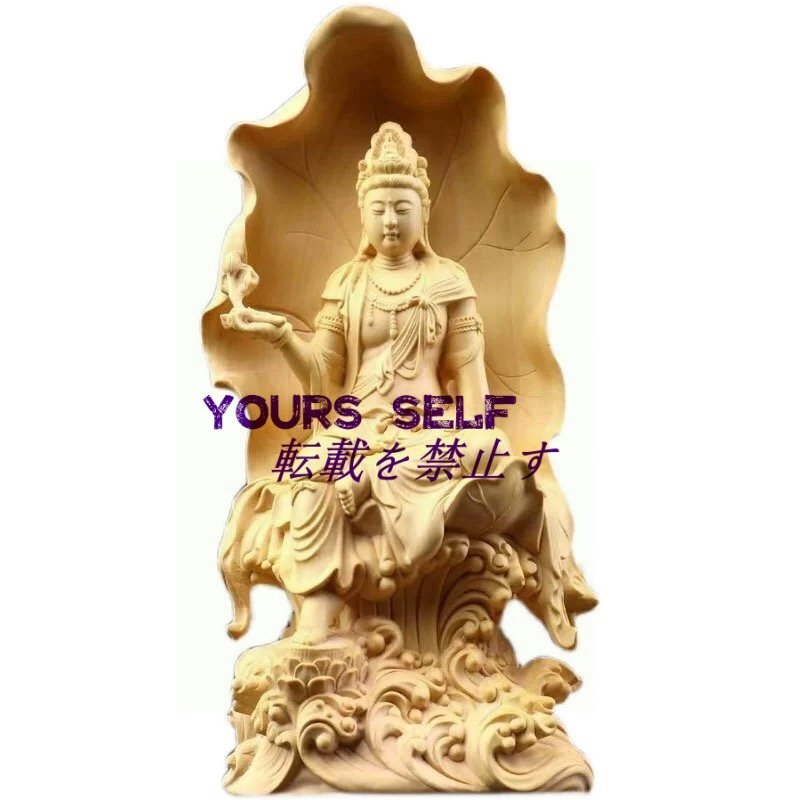 自在観音菩薩 ★木彫仏像 仏師彫り 招財開運 仏教工芸品 精密彫刻 高さ18cm