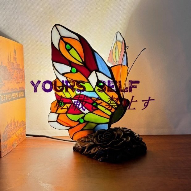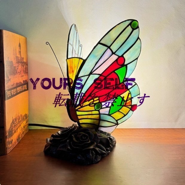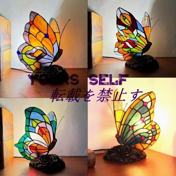 ◆稀少品◆芸術品◆ステンドランプ ステンドグラス 蝶 照明 レトロな雰囲気 室内装飾 ティファニー デスクライト