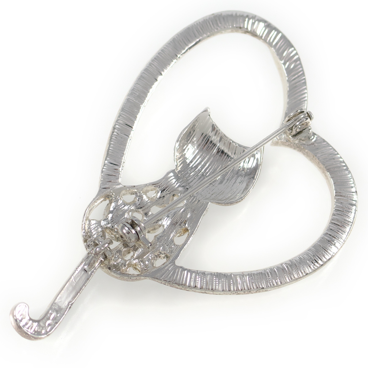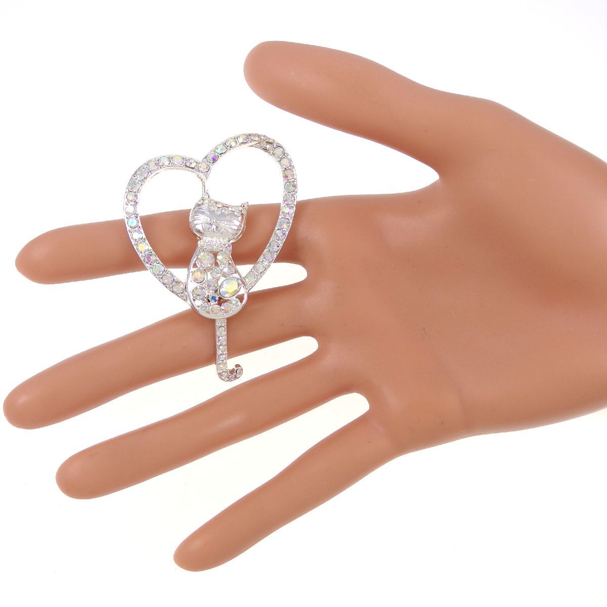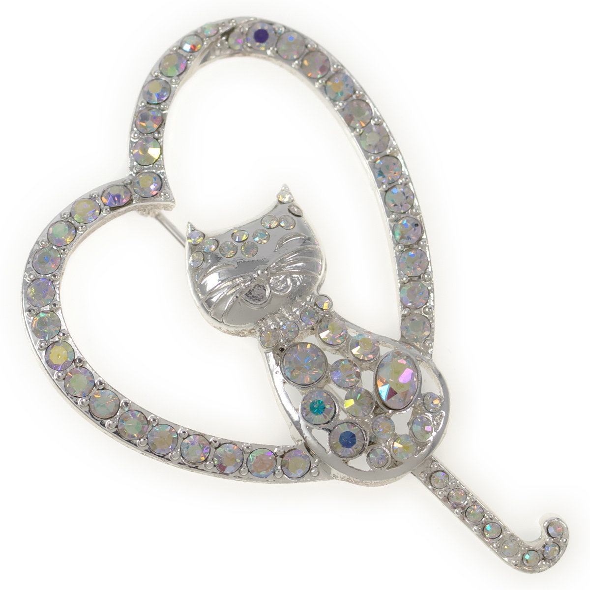 UK2952◆ ハート&キャットモチーフ オーロララインストーン 猫 ◆ ヴィンテージブローチ ◆