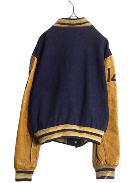商品名 | 60s USA製 ★ HATCHERS 袖レザー ウール スタジャン メンズ L 程/ 古着 ヴィンテージ サガラ ワッペン付き アワード ブルゾン ツートン |