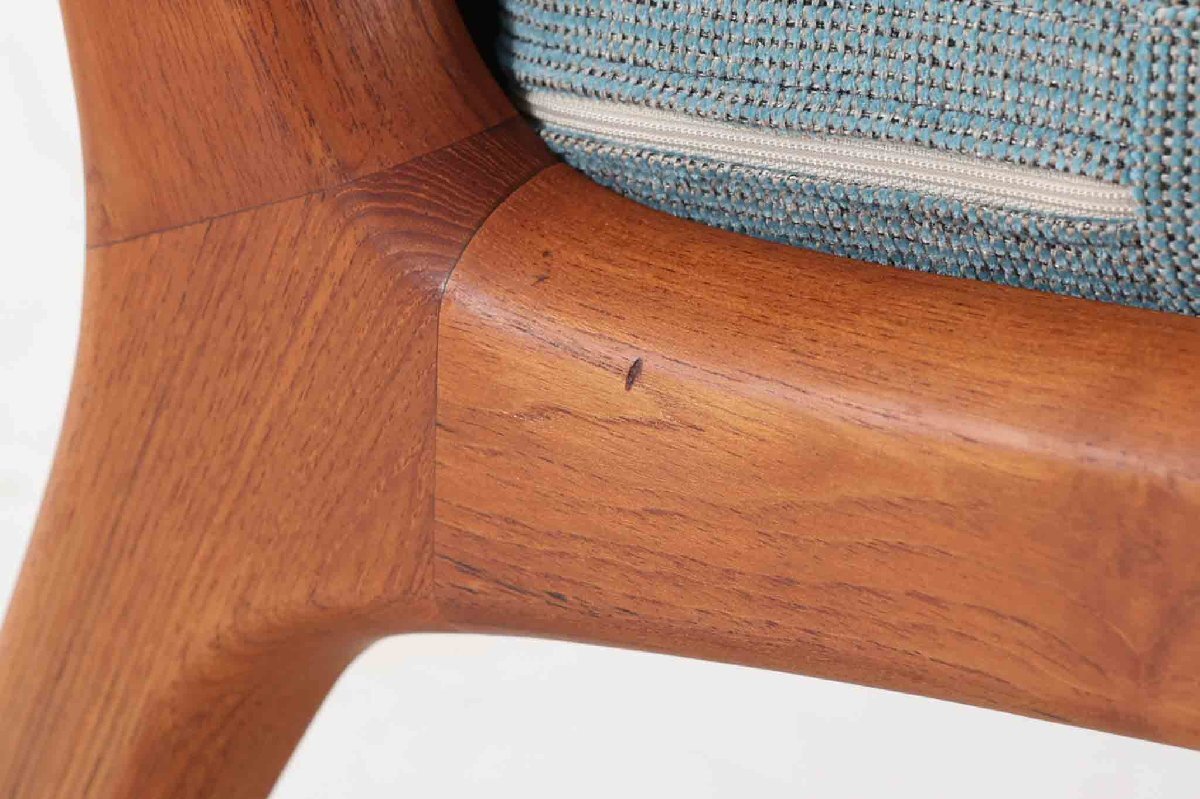コンディション | 木部に傷、あたり傷、色ムラが見られます。メンテナンスを行っておりますので、全体的には綺麗な状態に仕上がっています。 ※ビンテージ品です。お伝えしきれない細かい傷や使用感等が御座います。ご了承下さいませ。 「メンテナンス内容」 木部はサンディング後、オイル塗装にて仕上げております。クッション内部はウレタン交換後張替え済みです。座面下布に破れがあったため張替済みです。 |