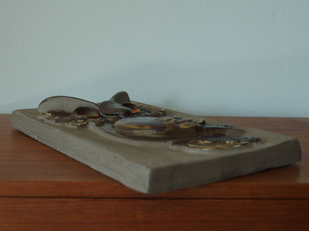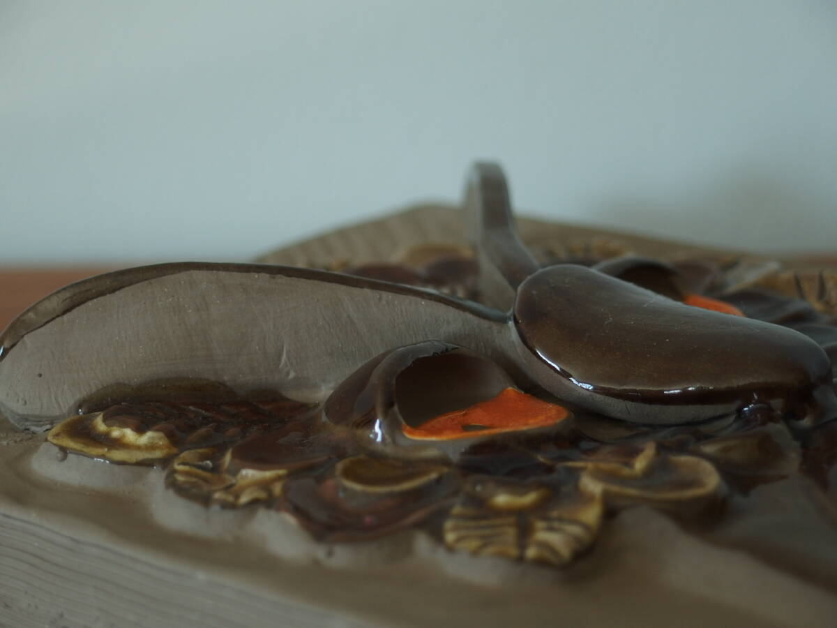 ![]() | 商品説明 ♪スウェーデンのメーカーJie Gantofta (ガントフタ)製の飾り用陶板です。1970年代製のヴィンテージ品になります。 頭部の毛並みが葉っぱで作られ、立体感のあるフクロウがモチーフです。日本市場で全く見かけることがない激レア品です。 色々調べたのですが、デザイナーはEgon Larsson氏と言う情報がありますが、定かではありません。 【状態】 よーーーく見ると、1カ所だけカケが見られますが、とても小さいものなので作品の雰囲気を損ねるものではありません。目の上にある立体的に接続されている部分に亀裂が見られますが、製造時点からのものです。もちろん、この部分がぐらつくといったことはありません。薄いカンニュウが少し見られます。 大きなカケ&ひび割れはありません。総合的に見て、個人的な見解ですがとても良いヴィンテージコンディションかと思います。 ハンドメイドの品です。製造時に出来た窯傷やヘラで出来た凹凸があります。特に写真がなくてもこういった個所があることを予めご了承ください。 【お願い】 出品の品はヴィンテージのユーズド品です。コンディションについては、なるべく詳細に記載していますが、細かいキズ擦れなど記載漏れがある場合がございます。いずれの場合も返品はお受けしませんので、写真をたくさん撮りましのでご確認ください。状態を納得した上での入札をお願いします。 【サイズ】 縦 30cm 横 17cm 厚 2cm 重さ約1460g 素人採寸に付き、若干の誤差が生じます。 いずれの場合も返品はお受けしませんので神経質な方は、入札をご遠慮下さいませ。 光の加減やお使いのPC環境によって商品写真の色が異なる場合があります。 他にもヴィンテージ品を多々出品中です。宜しかったらご覧下さい。 発送方法 ★割れ物ですのでゆうパックになります。住所によって送料は違ってまいります。発送は兵庫県からです。 前もって送料をお知りたい方は『出品者への質問』からお問い合わせください。 [ ご注意ください ] 輸送途中における事故や破損、紛失などのトラブルに関して当方では一切の責任を負いかねます。 コメント ★お願い 落札されて連絡を下さらない方には悪い評価が付きます。落札後24時間内に連絡のできる方に限らせて頂きます。 不明な点がございましたら落札前に聞いてください。落札後のキャンセルは大変迷惑ですので絶対におやめ下さい。 |