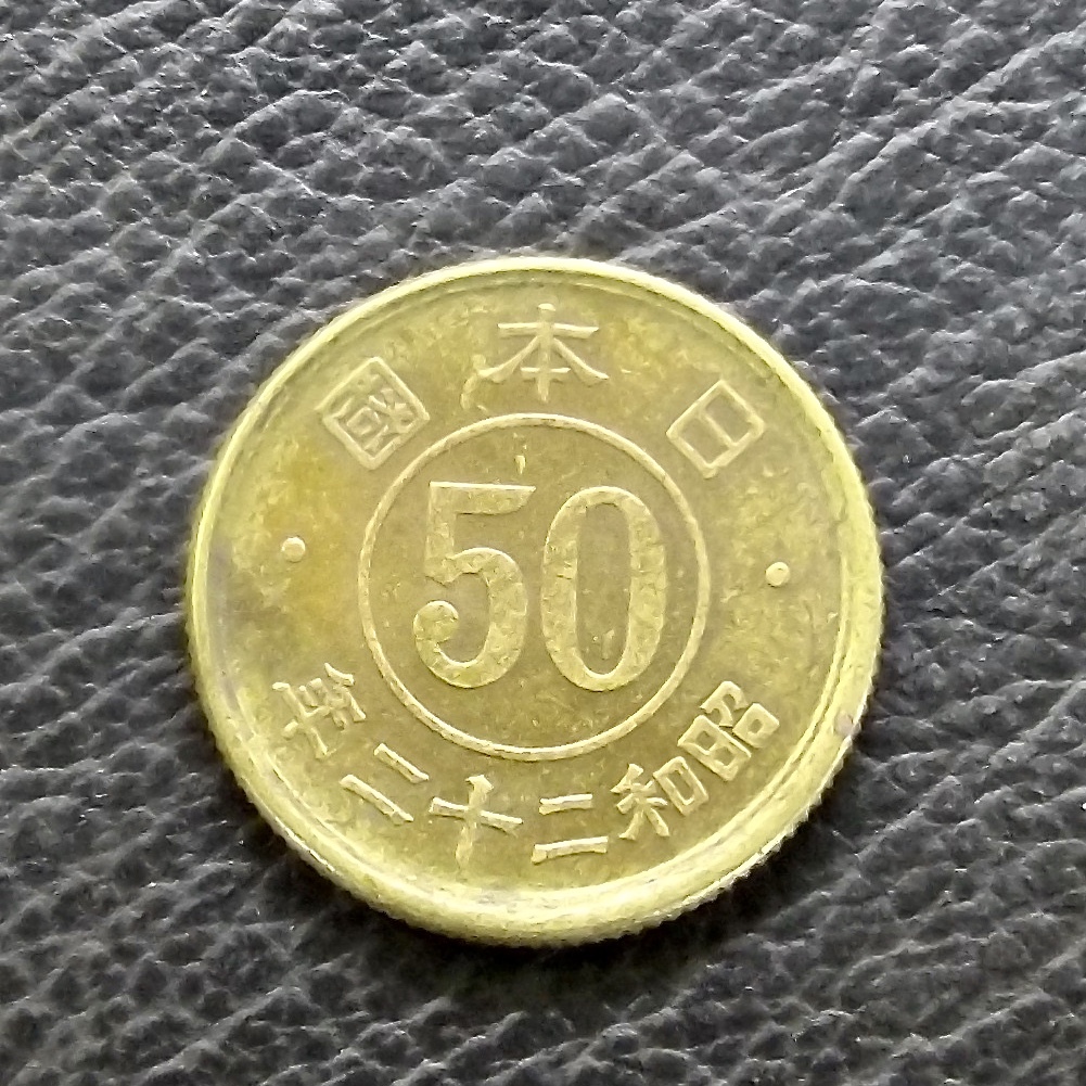 小型50銭黄銅貨 昭和22年 送料無料 (19979)硬貨 古銭 アンティーク 日本 貨幣 近代 コレクション コイン