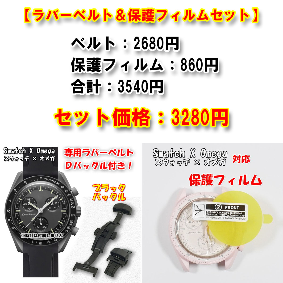 Swatch×OMEGA スウォッチ×オメガ 専用ラバーベルト(ブラックDバックル付き)+風防保護フィルム セット販売
