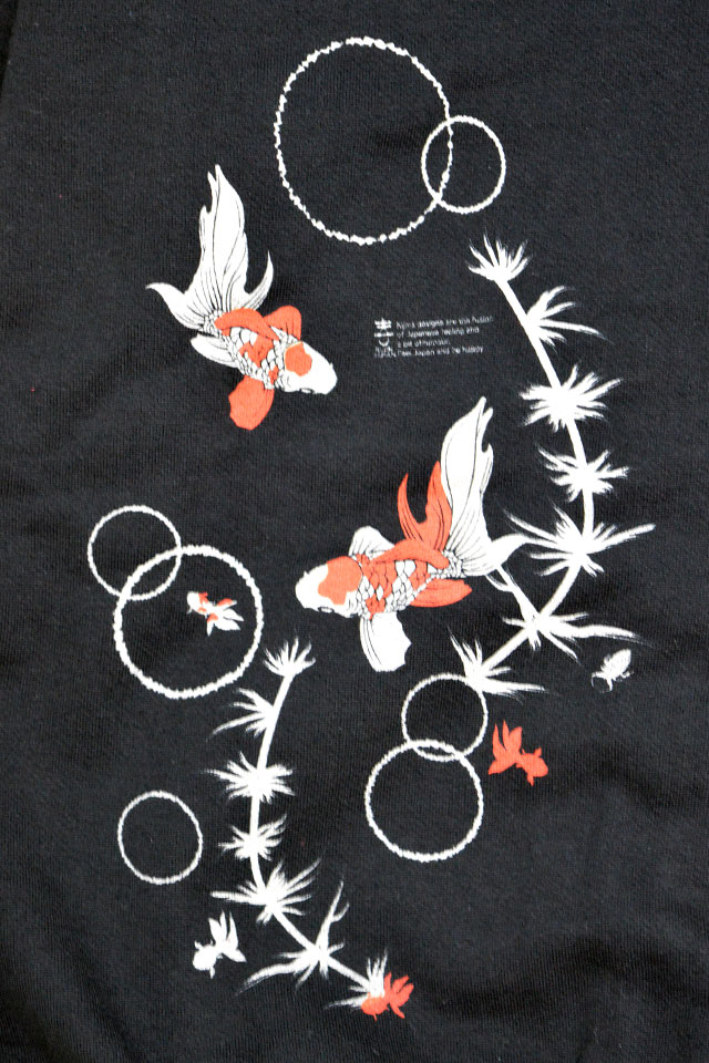 着た人、それを見た人が笑顔になれる、他にはないデザインを提供し続けている「喜人」さんから「金魚ジップパーカー(KJ-42307)」のご紹介です。 春物としても大活躍する裏毛ジップパーカーで、金魚デザインを準備しました。 喜人ではずっと大事にしてきた金魚柄。 小さく可愛い金魚が散りばめられたデザインや、特大のメガ金魚柄もありましたが、今回は程よく優雅に水面を泳いでいる金魚ちゃんが背面に描かれています。 よく見るとタガメが隠れているところもポイントです。 左胸にはブランドロゴを刺繍。 袖には金魚と水草をプリントしました。 フロントはジップアップ仕様。 両身頃にはポケットが縫い付けられています。 袖口、裾にはリブを配し、野暮ったさを軽減しました。 | |||||||||||||||||||||||||