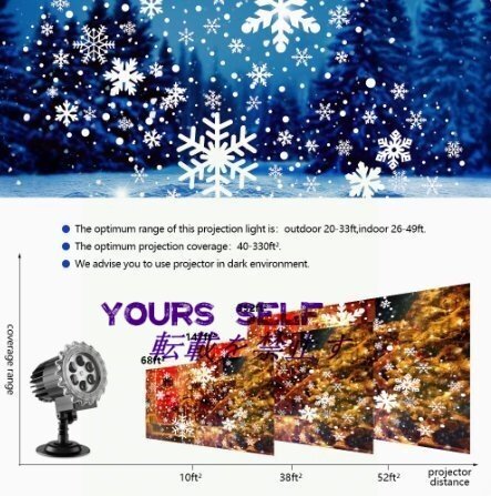 距離: 最適な投影結果を得るには、ライトを 10 フィート (3 メートル) 以上離れた場所から投影することをお勧めします。製品の破損を防ぐため、LED スノーフレーク ランプを 6 フィート (2 メートル) 以上離れた場所から落とさないようにしてください。