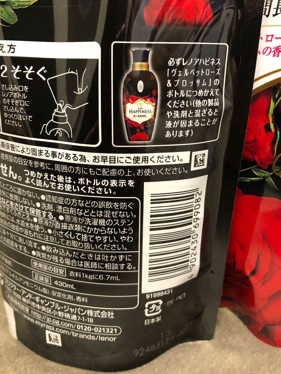 レノアハピネス ヴェルベットローズ&ブロッサムの香り 柔軟剤 詰替用 430ml
