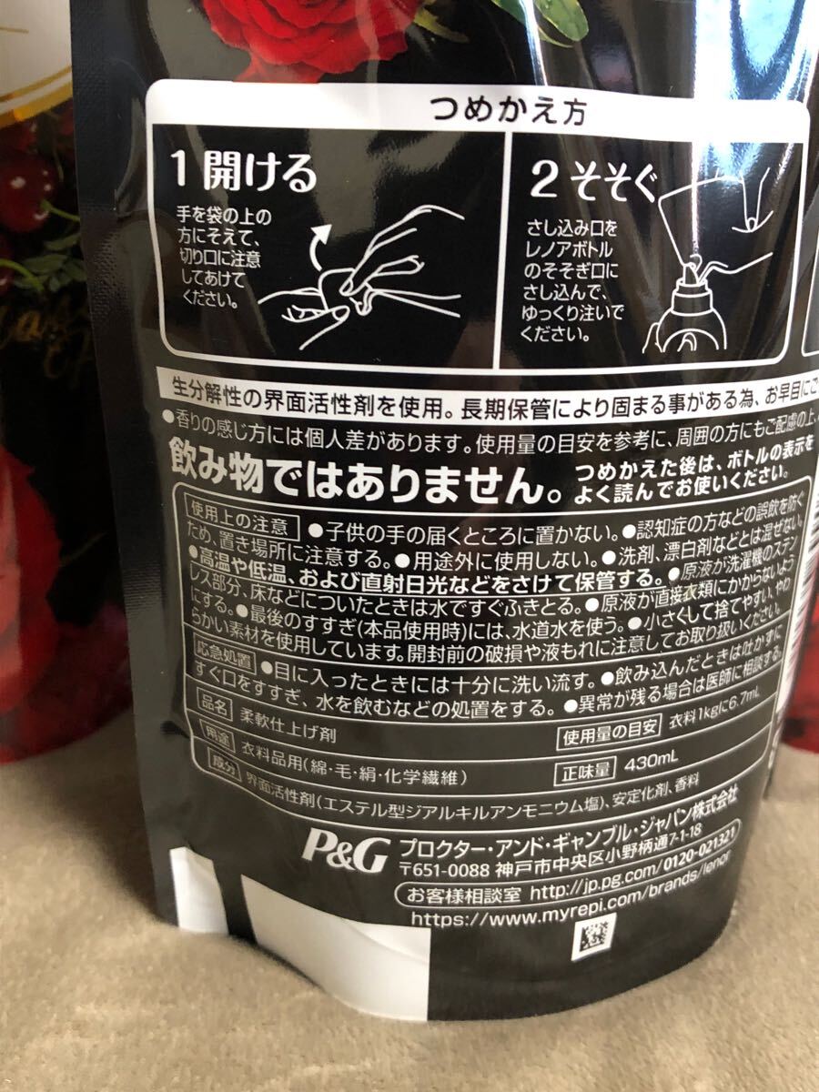 廃盤 レノアハピネス ヴェルベットローズ&ブロッサム  詰め替え 柔軟剤 430ml  3袋 P&G