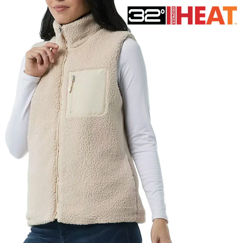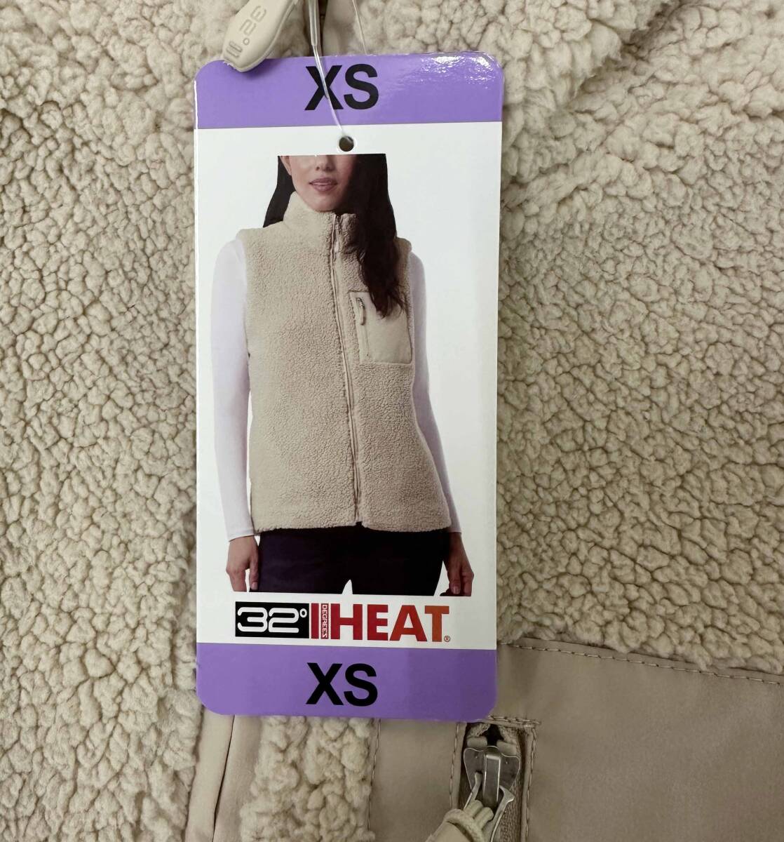 新品 S ★ コストコ 32HEAT ボア もこもこ ベスト クリーム US-XS 軽量 フルジップ シャーパ フリース レディース 32 ヒート ディグリース