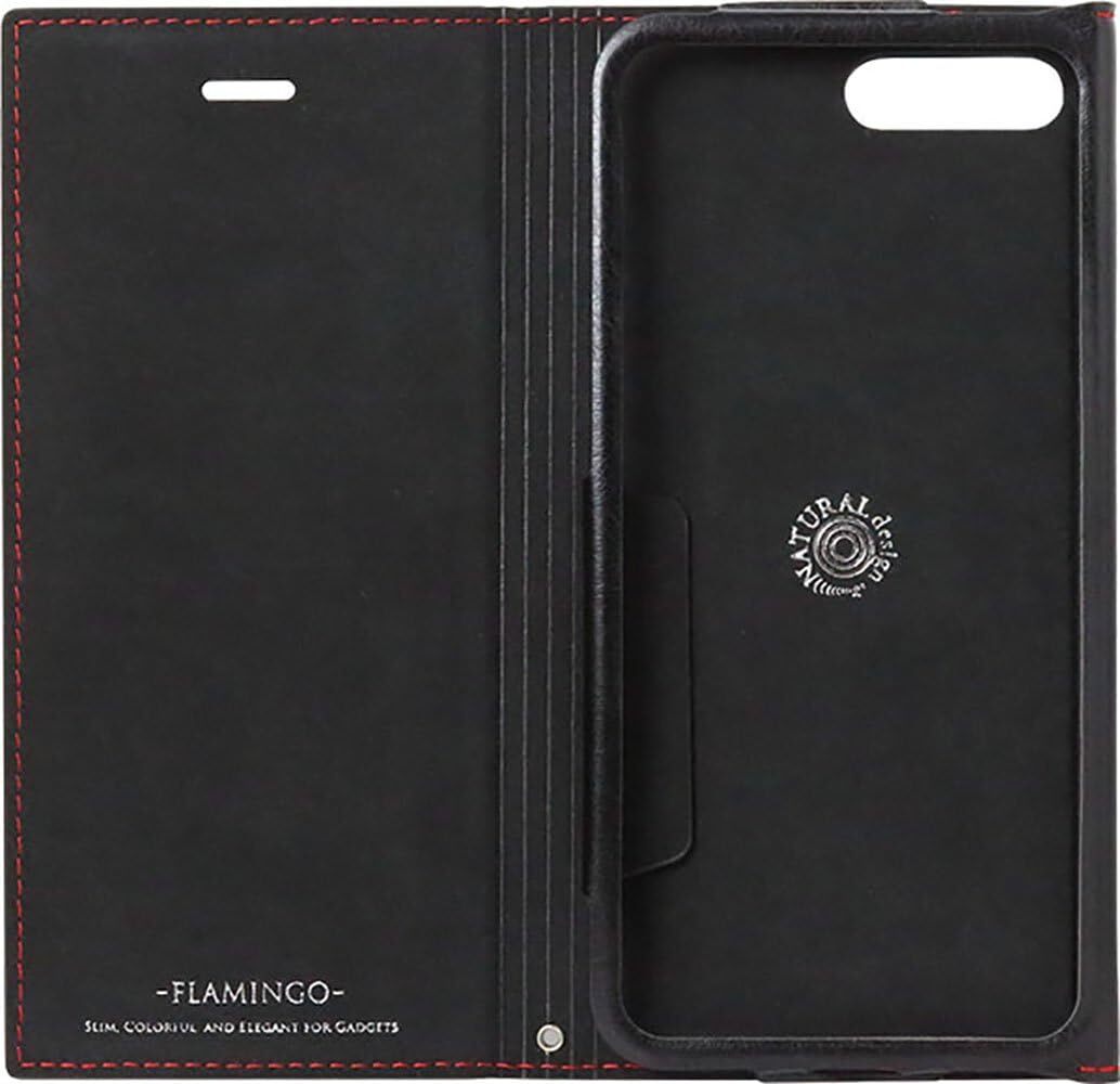 NATURAL design ナチュラルデザイン iPhone7Plus iPhone8Plus 手帳型 ケース FLAMINGO PUレザー調 ストラップ付 カーボン調 ブラック ★i