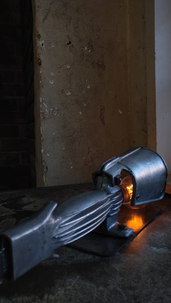 フランス製1950年頃、パン職人が工房の石窯内を照らすため、薪充填およびパンの膨らみ具合などに関連するすべての取り扱いに使用されていたハンドランプです。