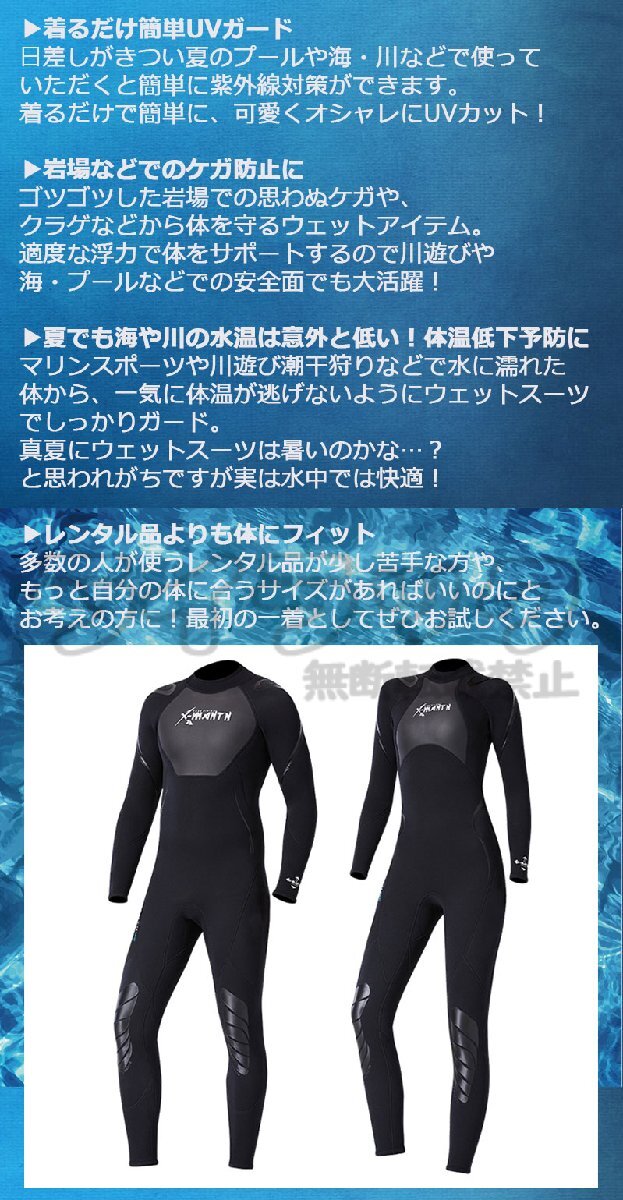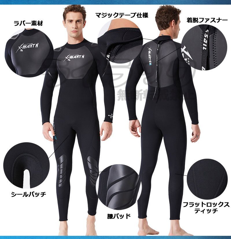 【M】ウェットスーツ 3mm フルスーツ メンズ サーフィン サーフボード ダイビング シュノーケリング バックジップ ネオプレーン