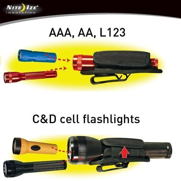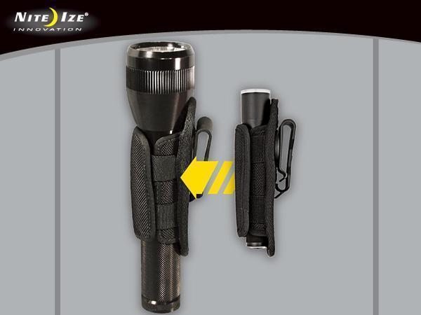 伸縮するホルスターがあらゆるサイズと形のフラッシュライトにフィット