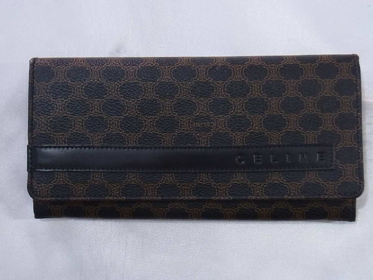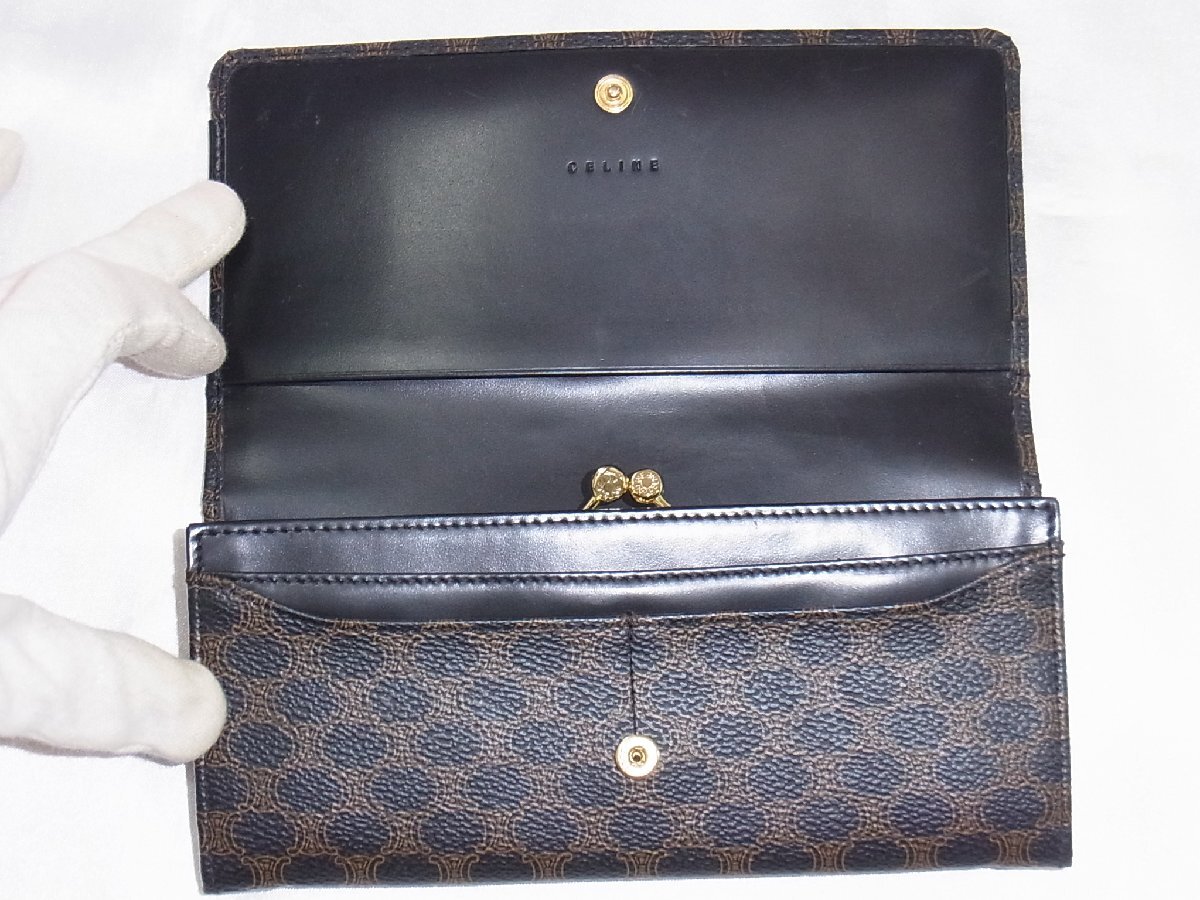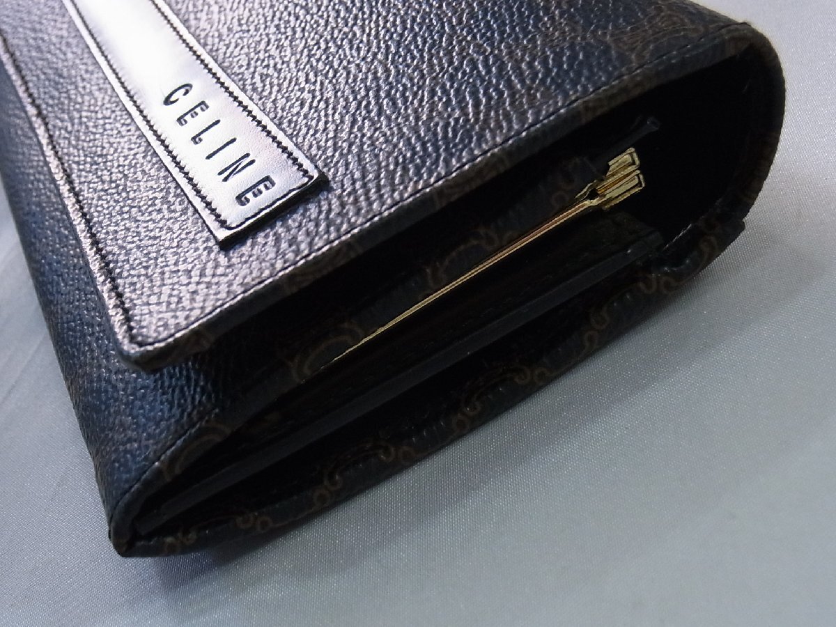 | セリーヌ CELINE 二つ折り長財布 がま口 マカダム ブラウン PVCレザー 中古良品 | |