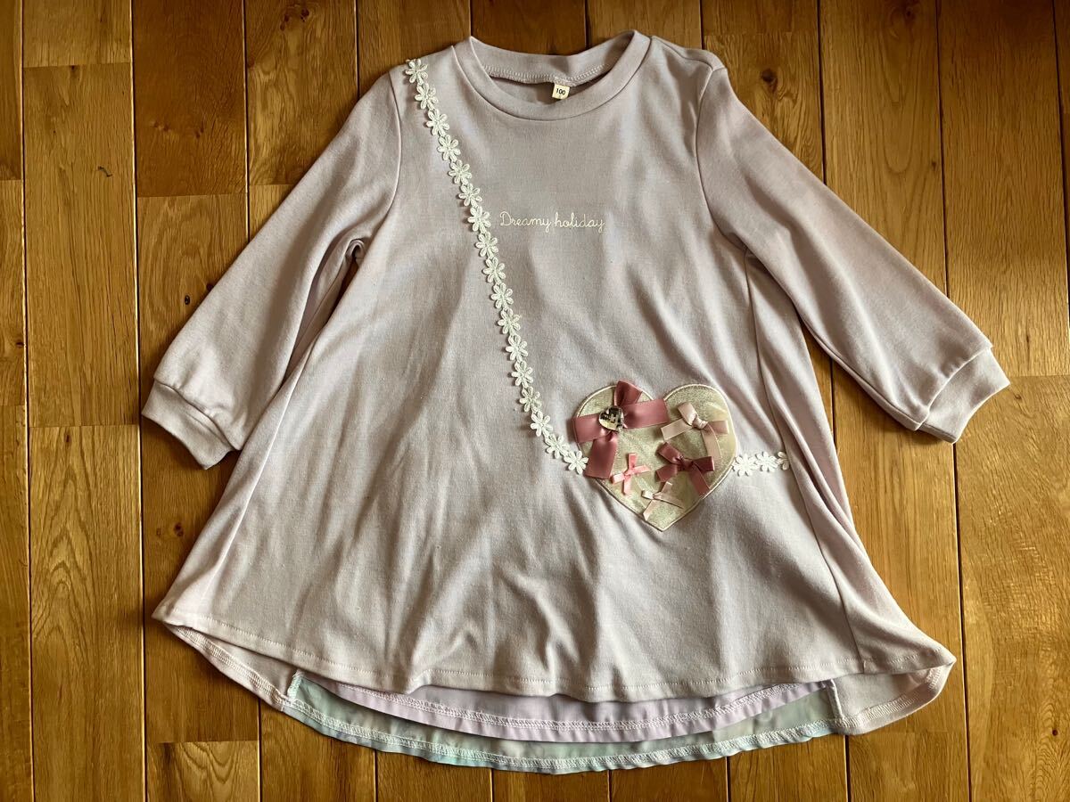 新品 女の子 ベビー 薄手長袖 ワンピース くすみピンク 100センチ
