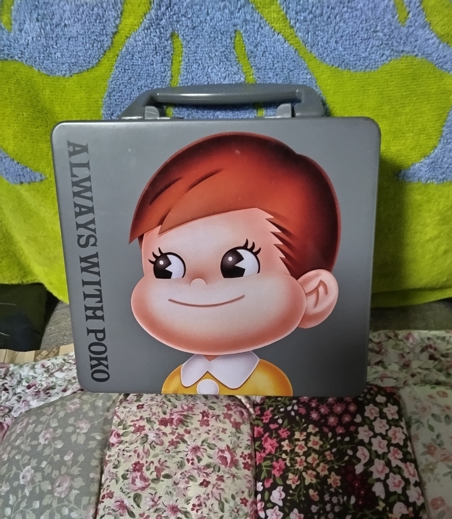 不二家  ポコちゃん 缶CDケース トランクBag型 ブリキ レトロ ビンテージ 昭和 キャラクター キッズ 中古