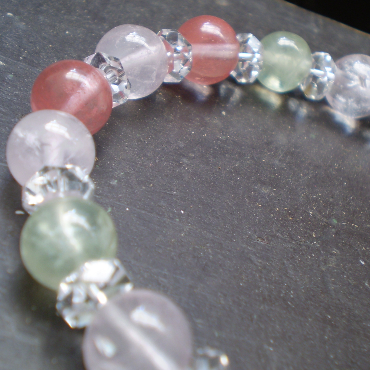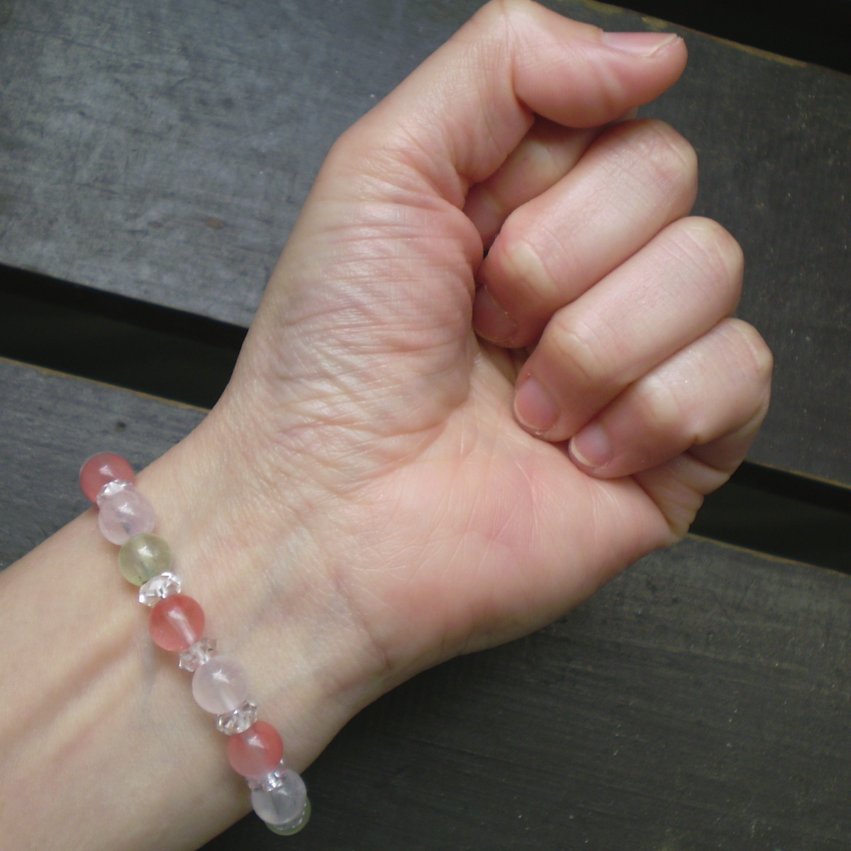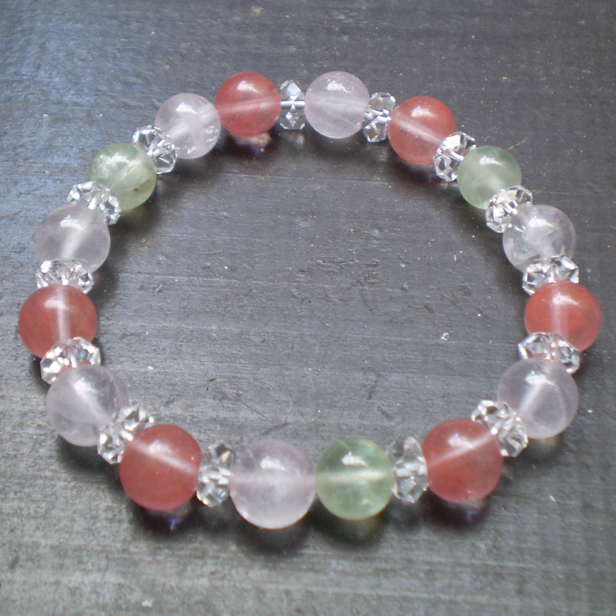 ローズクォーツxチェリークォーツxプレナイトブレスレット 天然石 パワーストーン