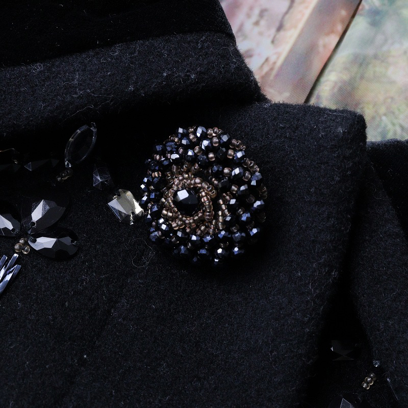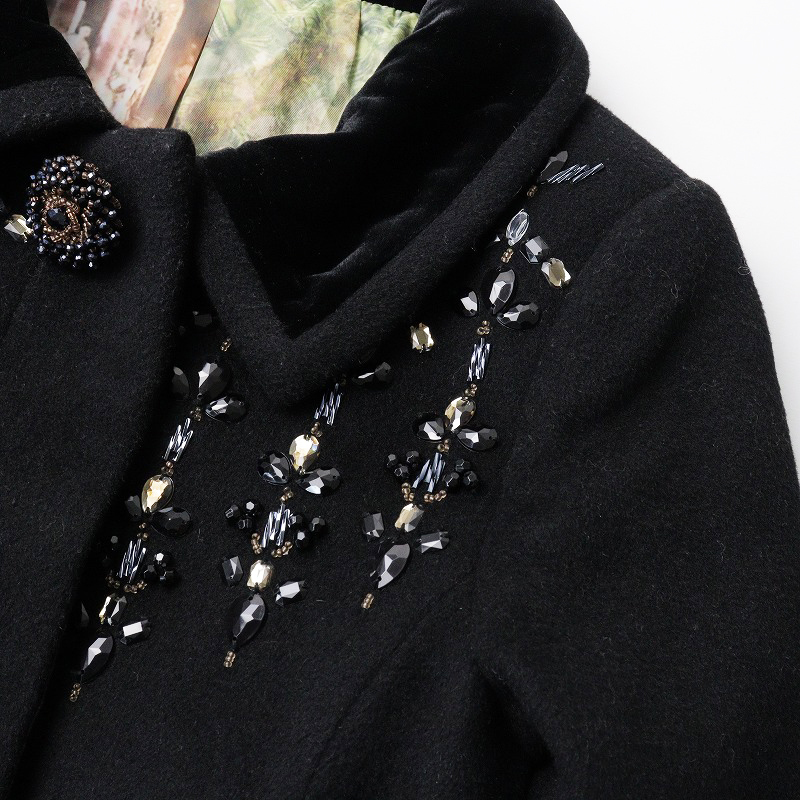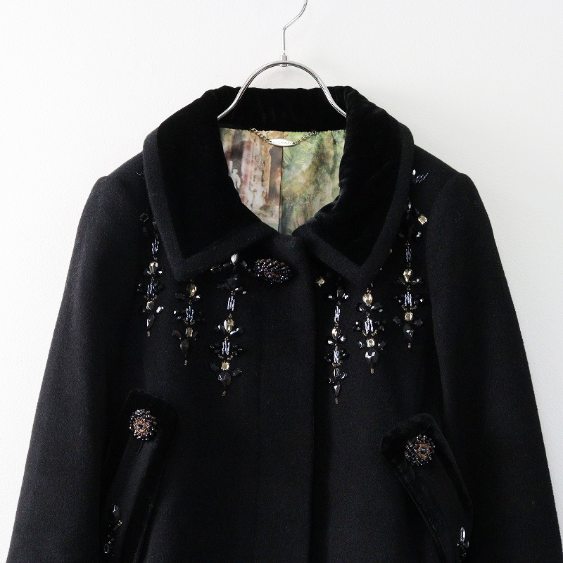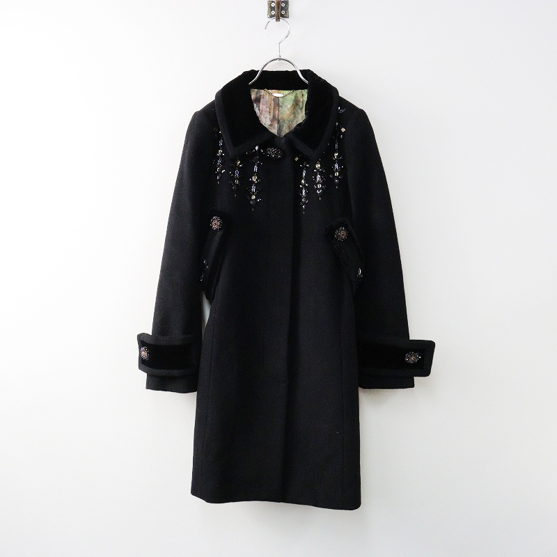 ロイスクレヨン Lois CRAYON 2014受注コート イザベラ ビジュー付きコート M/■ブラック ウール アンゴラ アウター【2400014294170】