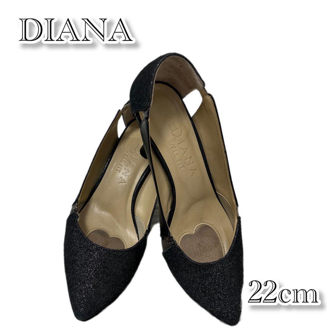 DIANA ダイアナ パンプス ハイヒール 22cm 黒 グレー フォーマル 靴