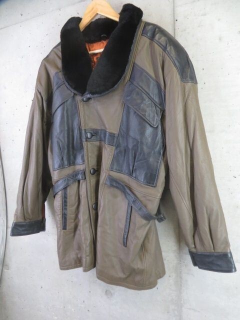 2220b18◆最高級◆ショールカラー襟 羊革ラムレザー 中綿 ジャケット コート XL/シープスキン/ブルゾン/メンズ/男性/紳士
