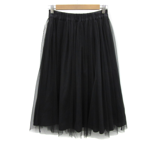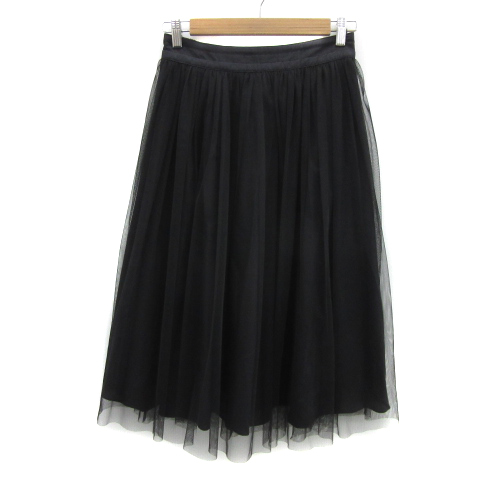 レイビームス Ray Beams チュールスカート ギャザースカート ミモレ丈 無地 0 S 黒 ブラック /YS2 レディース