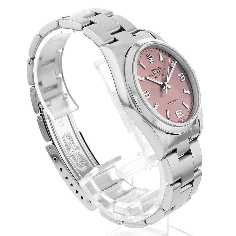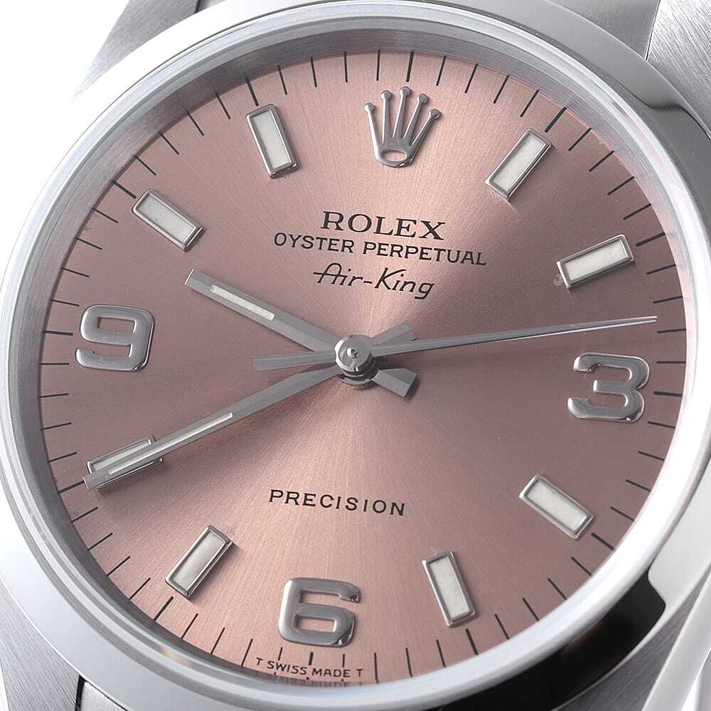 モデル情報 | エアキング Ref.14000です。デイト付きのモデルが多い中で、このエアキングのシンプルなディテールは希少です。シンプルなデザインゆえに、時と場所・服装を選ばず、あらゆる場面で活躍できることや飽きずに愛用できることから、廃番となった今でも根強い人気を誇ります。 |
