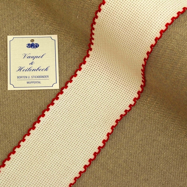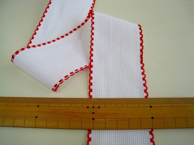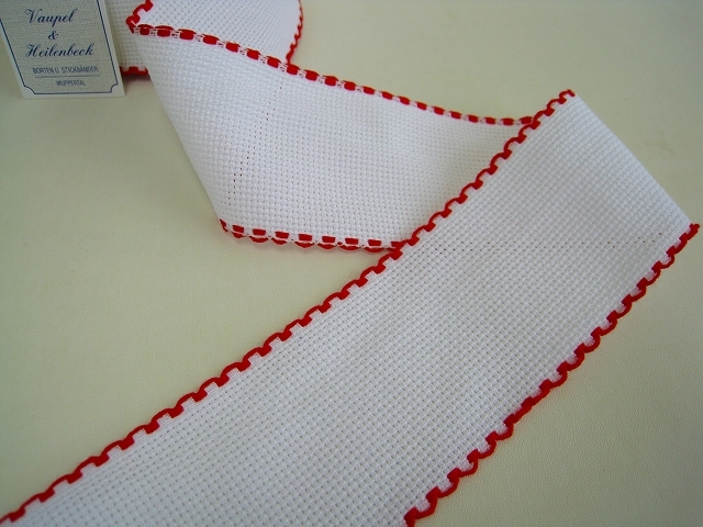 アイーダテープ幅5センチ ステッチバンド 縁レッド ドイツ製