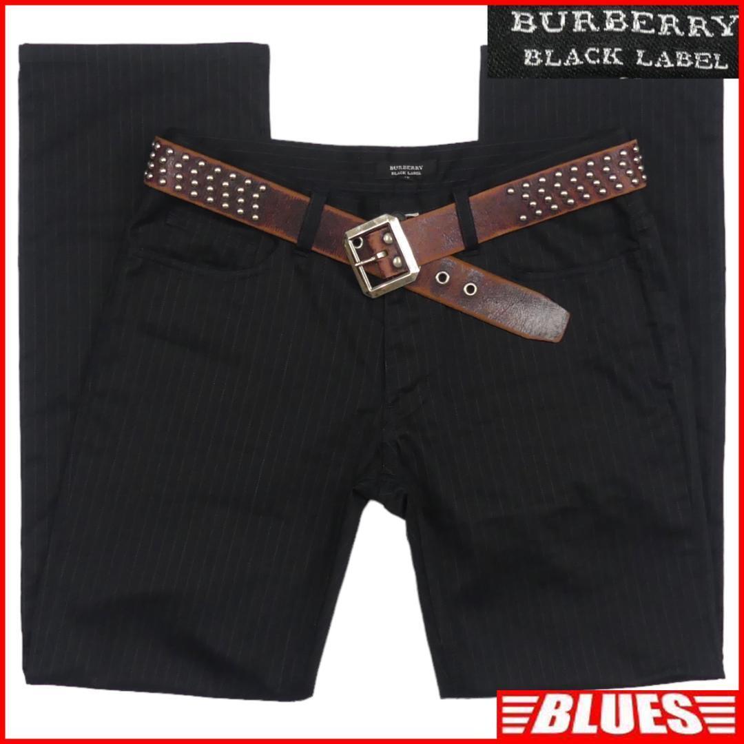 即決★BURBERRY BLACK LABE★W30位 スラックス 廃盤 バーバリーブラックレーベル メンズ 76 黒 ストライプ 三陽商会 ナイト刺繍