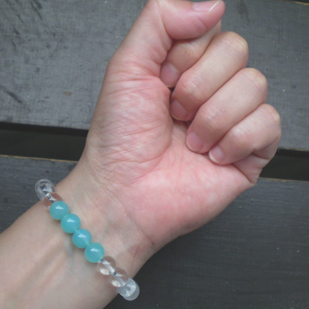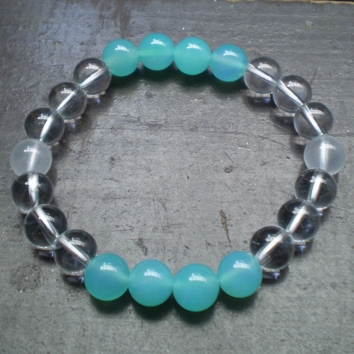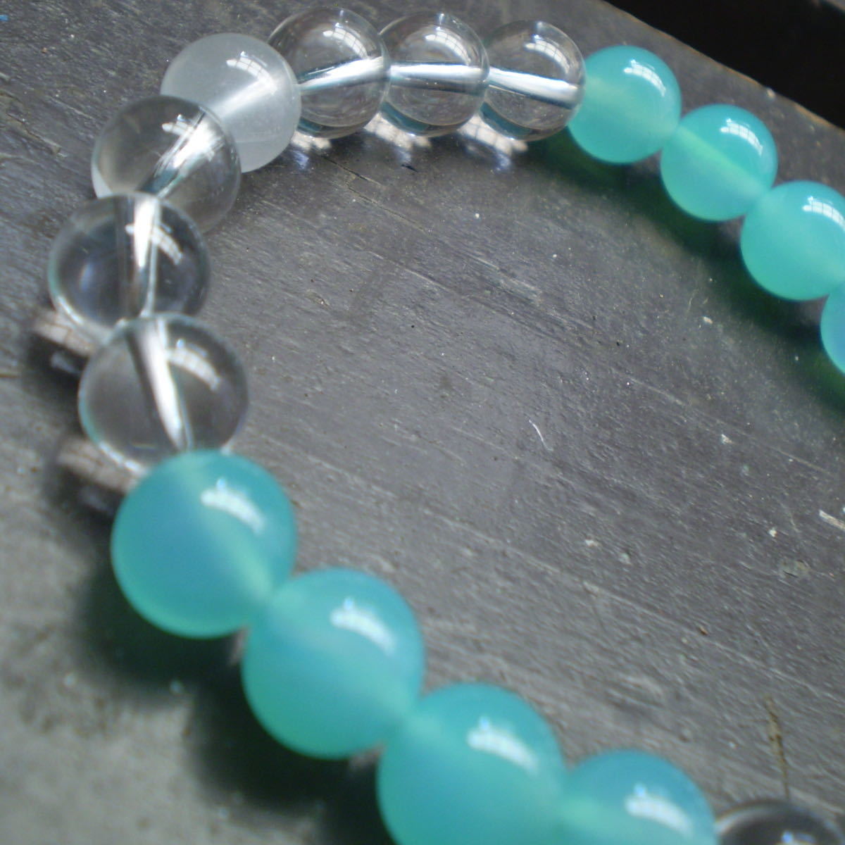 シーブルーカルセドニーxミルキークォーツx水晶ブレスレット 天然石 パワーストーン
