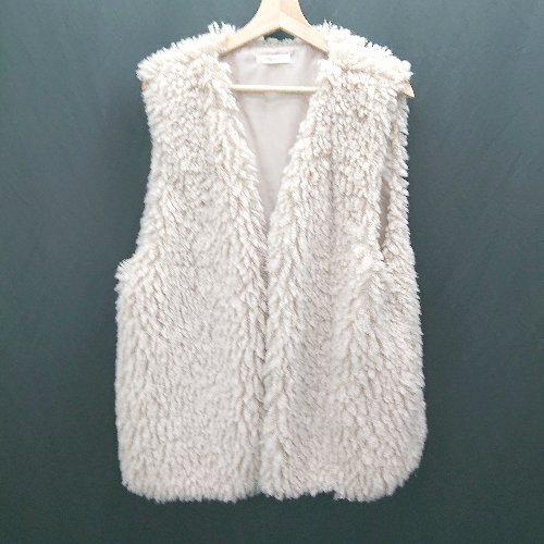 ◇ ⊇ CLASSICAL ELF クラシカルエルフ ポケット付 ノースリーブ ファーベスト サイズL ベージュピンク レディース E