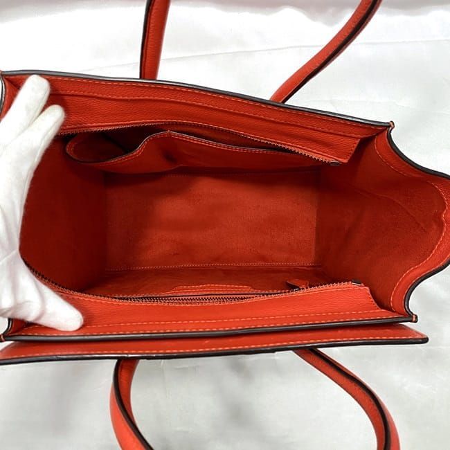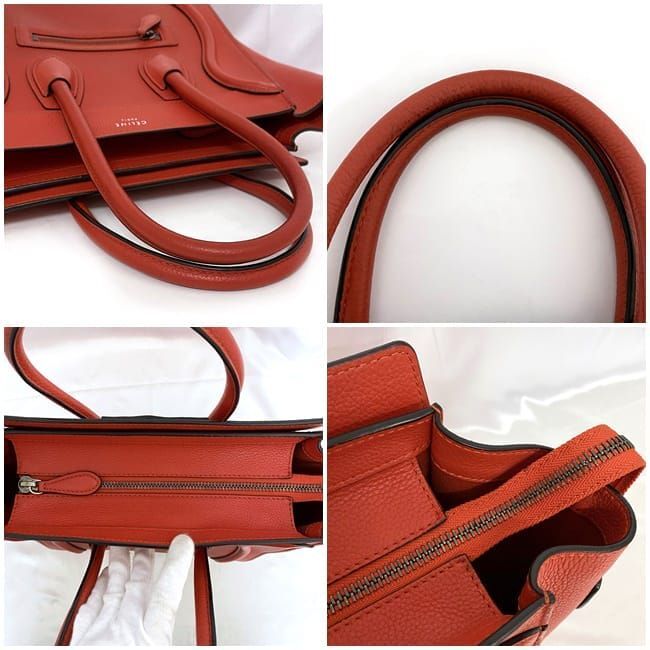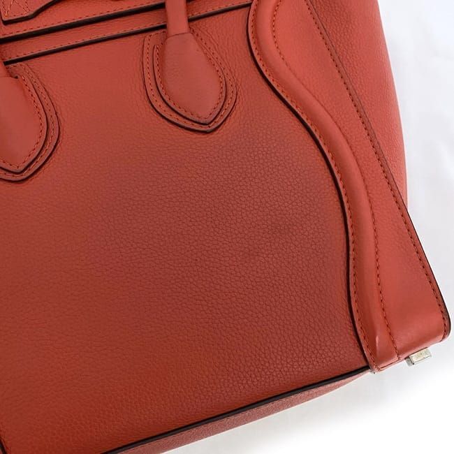 詳細説明 | 底部の角に擦れ、ファスナーレールサイドの一部に汚れ、表面のファスナーポケット付近と背面下部に汚れ、内底に薄汚れ、表面に薄汚れ有、ハンドルに多少の曲がり癖など使用感はありますが比較的綺麗なお品物です。 |
