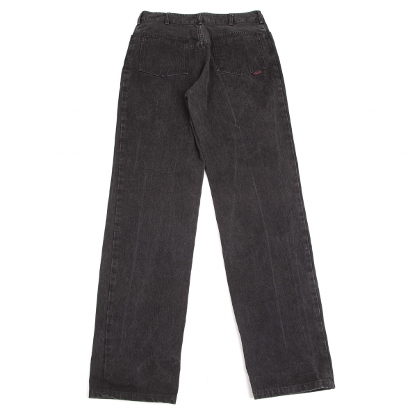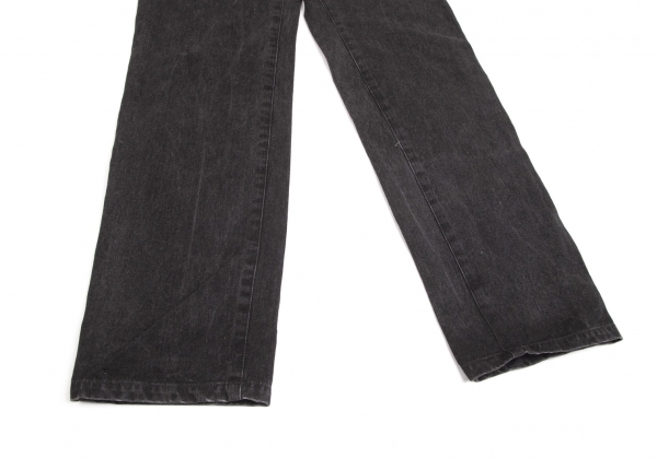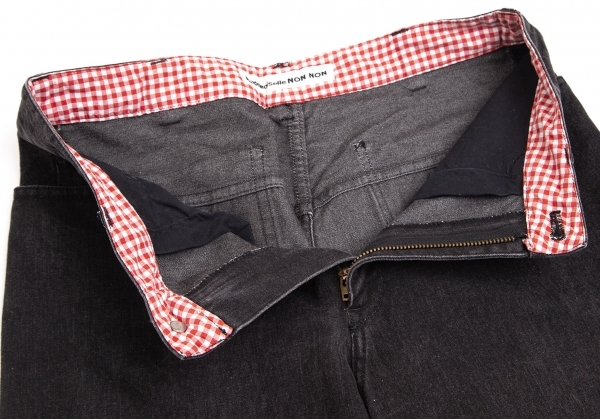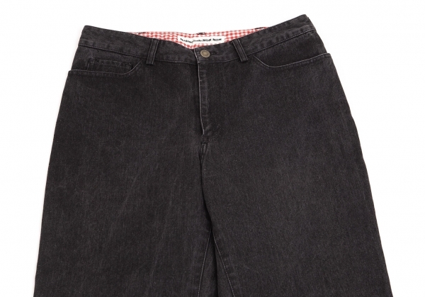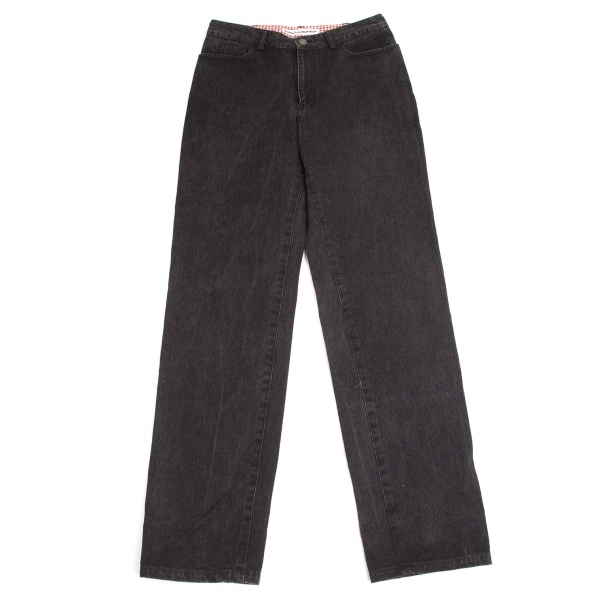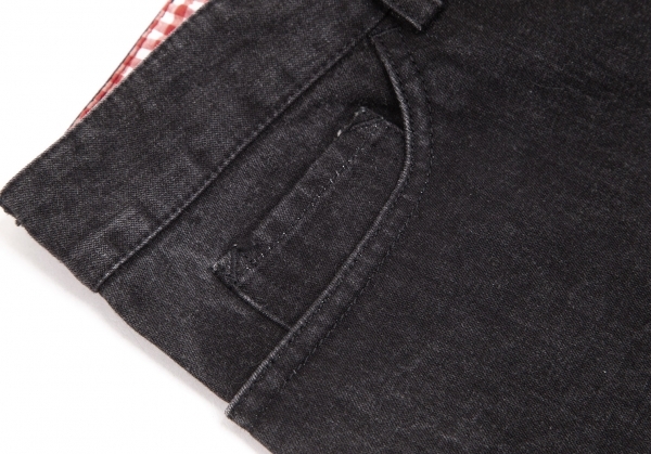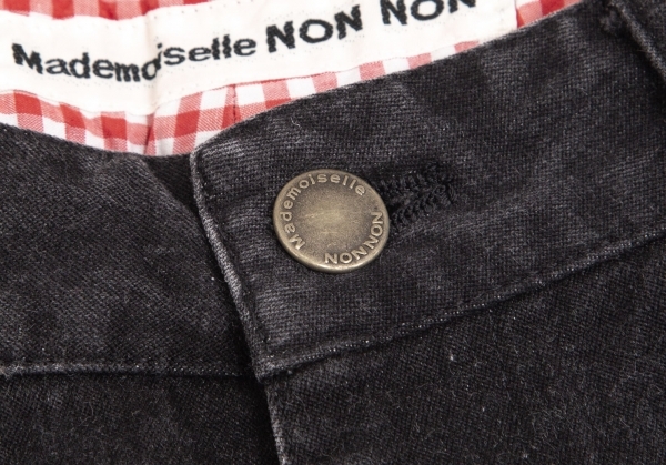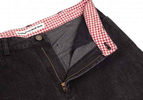 | マドモアゼルノンノンMademoiselle NON NON裏ギンガムチェックストレートデニムパンツ ブラックM |