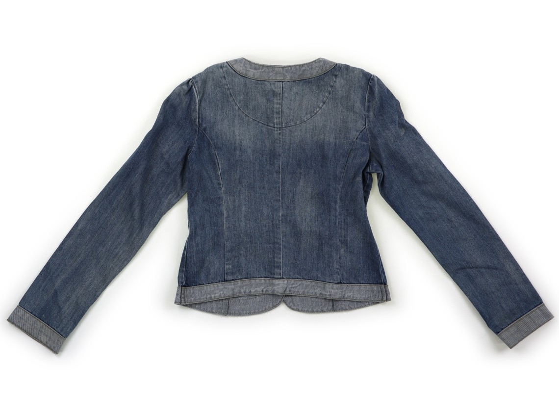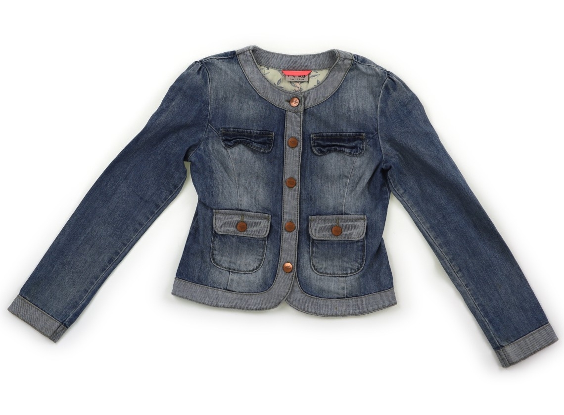 実際のサイズ表記は9-10yrs/134-140cmです。コットン100%のデニム地。裏地なし。デニム地特有の黄ばみ感、色褪せが強いです。袖や前身頃に黄色いシミが複数あり使用感が強めです。